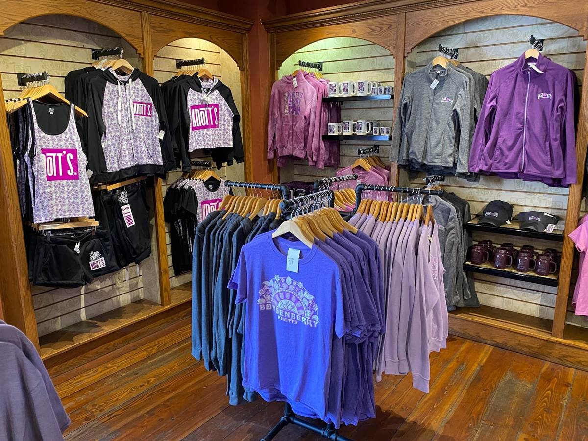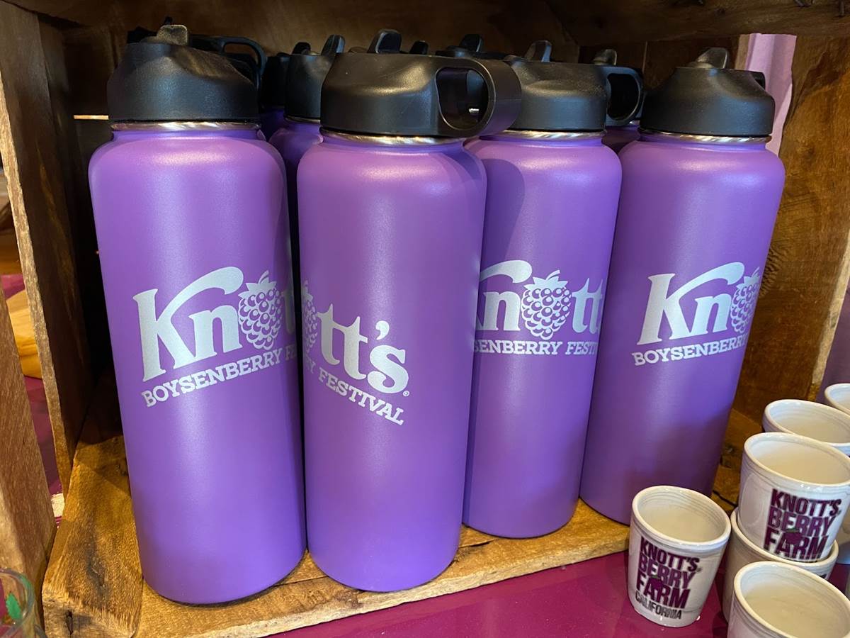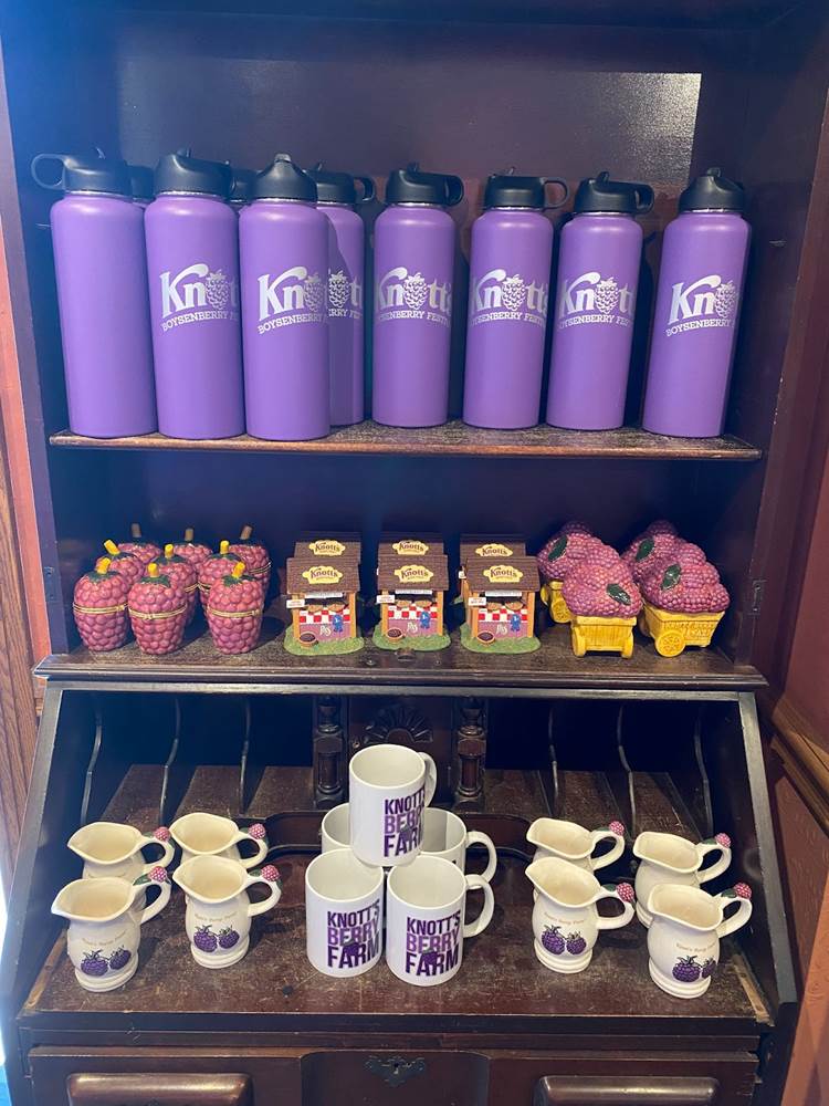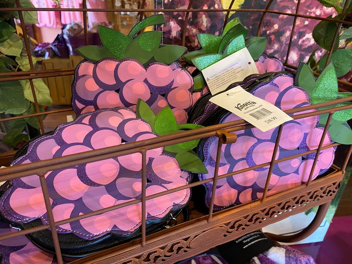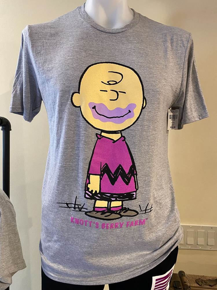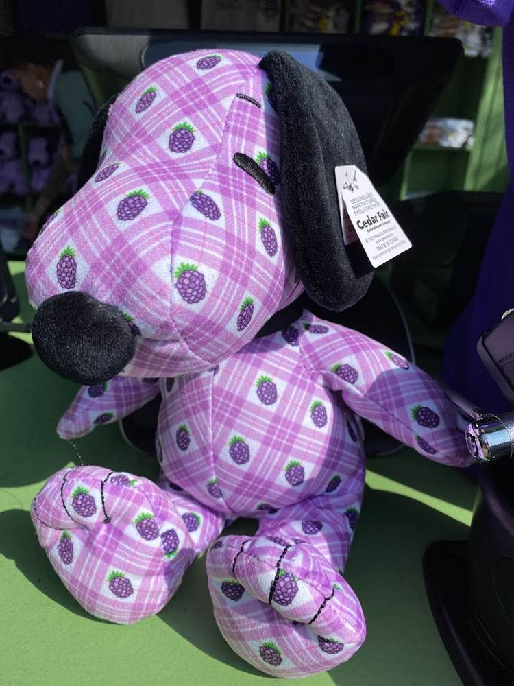 In addition to food, Knott’s Boysenberry Festival has also become known for its wonderful merchandise offerings, which this year include apparel, Snoopy plushes, boysenberry-shaped purses, water bottles, and even an umbrella. As always, the t-shirt and pin combo, available near the entrance to Ghost Town, is an especially good value.