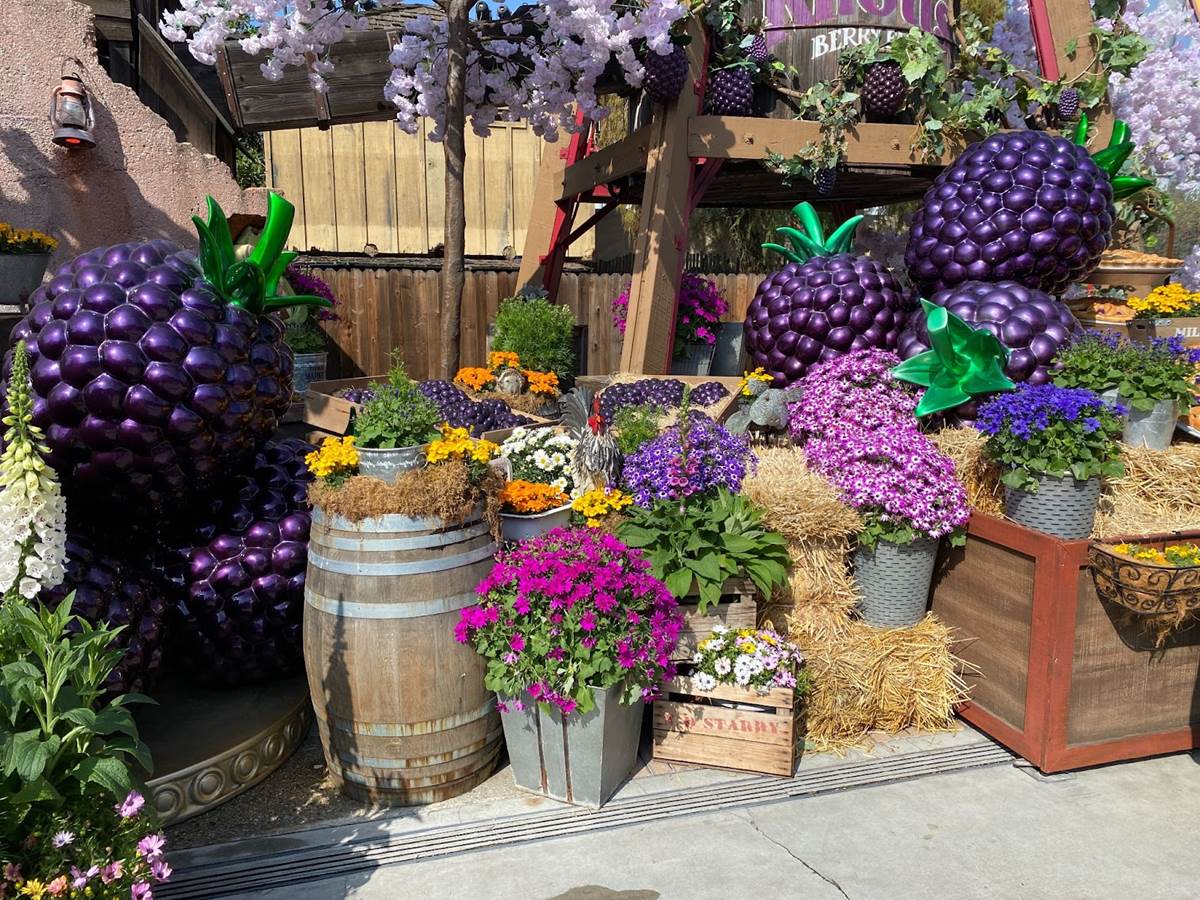 But rewinding time a bit, we arrived at Knott’s Berry Farm to check out Boysenberry Festival 2023 this past Friday, which was about a week after it opened for the season. As soon as we parked our car and began walking to the park, we could see some of the many wonderful and eye-catching decorations Knott’s had put up in celebration of the Boysenberry Festival event.