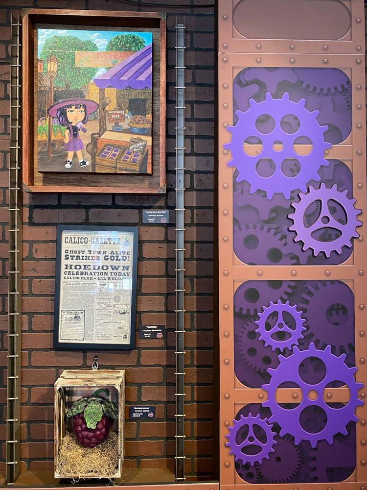 In the Calico Town Hall, guests can enjoy a video presentation about the history of the boysenberry as it relates to Knott’s Berry Farm and its founders, Walter and Cordelia Knott.