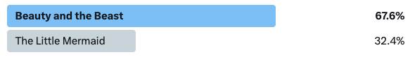 Before we move on to our next matchup, let’s take a look at our last result. Turns out things are not better under the sea as Beauty and the Beast pretty easily defeated The Little Mermaid, taking more than two thirds of the vote. No one’s great like Gaston or first rate like Gaston, no one moves on to the elite 8 like Gaston. A showdown with The Lion King is next.