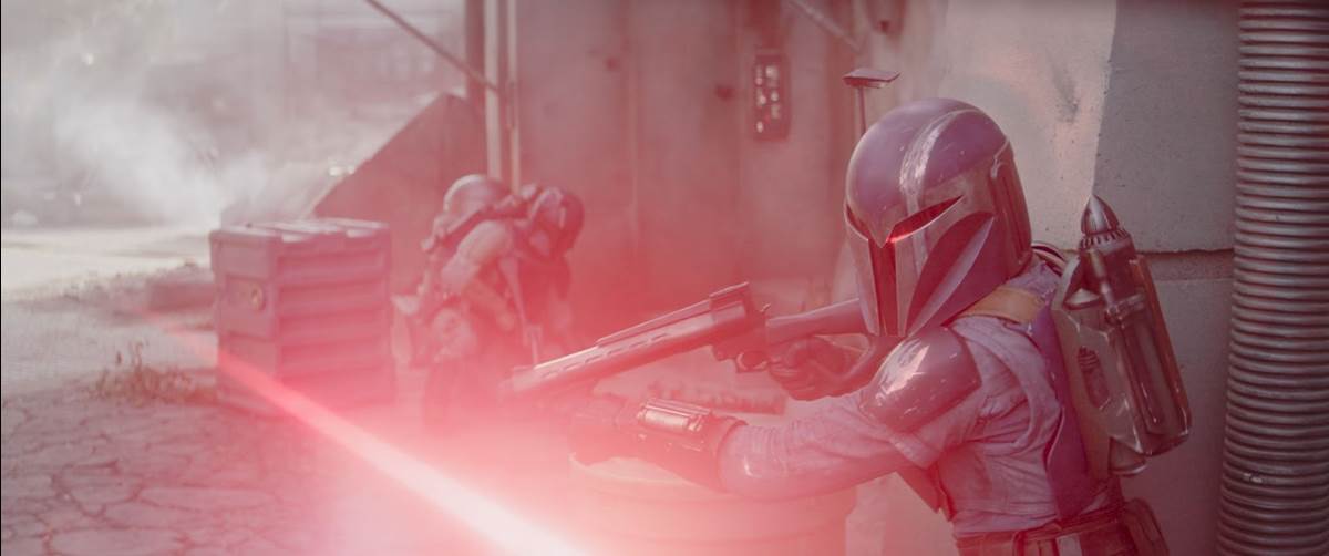 Most of the remainder of the episode is a very fun action sequence that sees the Mandalorians dropping into Nevarro City for a ground assault while Din Djarin (Pedro Pascal) distracts Gorian Shard’s airforce with the N-1 starfighter. There’s some welcome comic relief in the form of the Anzellan droidsmiths (Shirley Henderson) and once again I can’t help but want all of Shard’s very neat-looking crewmembers in action figure form as soon as possible. This episode’s director was Spider-Man: Into the Spider-Verse helmer Peter Ramsey, who I don’t believe has worked in live-action before, so it makes sense that the sequences that work best are the most heavily choreographed one that would have largely been assembled in pre-visualization, rather than the dialogue-heavy ones that come across as somewhat stilted and hamfisted here. It’s a thrill to see our heroes take back the city streets of Nevarro by force, but the most interesting parts of “The Pirate," story-wise, come in the episode’s denouement. It seems our covert has found a new, at least relatively giant monster-free home for the time being, back where they started in The Mandalorian’s first season, and also Bo-Katan Kryze (Katee Sackhoff) has been given the go-ahead to remove her helmet by the Armorer (Emily Swallow) not to mention the task of reuniting all the various scattered Mandos out there in the galaxy in an effort to reclaim Mandalore.
