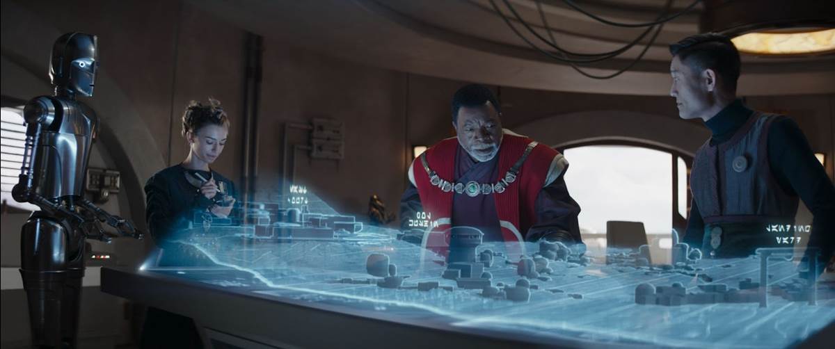 We’ve known from the third-season trailers for The Mandalorian that our protagonists would eventually be returning to the planet Nevarro to fend off Greef Karga’s (Carl Weathers) home city from the invading forces of Pirate King Gorian Shard (Cinderella actor Nonso Anozie).