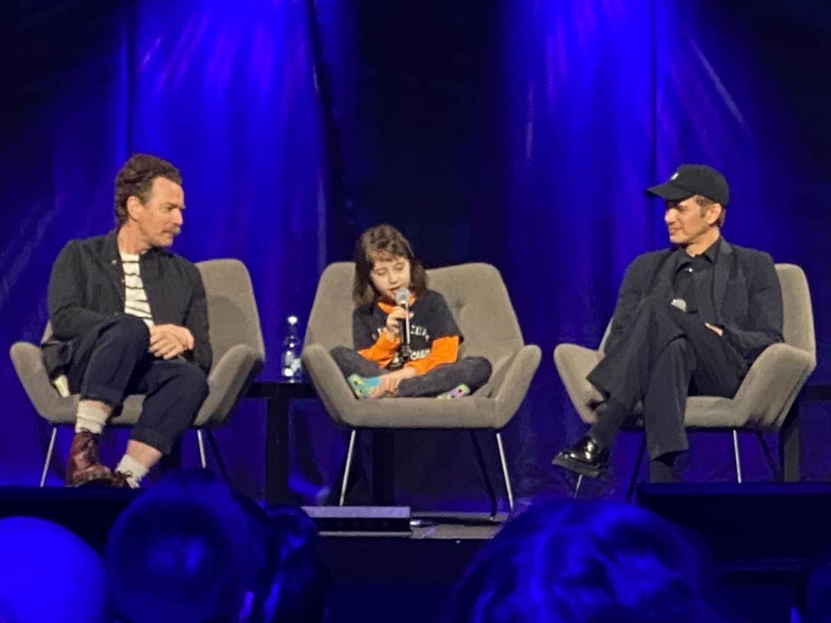 In-between panels, I ran back to the exhibit hall floor for an interview I had scheduled with Hasbro’s Star Wars and Indiana Jones team (coming soon to LaughingPlace.com and the “Who’s the Bossk?" podcast), then returned to the Celebration Stage for “A Look Back at Obi-Wan Kenobi." This panel was preceded by a fun moment when Ewan McGregor surprised a collection of Obi-Wan cosplayers on stage (see the image at the top of this article) and then the panelists came out for their chat. Amy Ratcliffe led the discussion again, and it was great to hear from director Deborah Chow, the aforementioned McGregor (who played Obi-Wan Kenobi, naturally), Vivien Lyra Blair (young Princess Leia Organa), Hayden Christensen (Darth Vader / Anakin Skywalker), and Indira Varma (Tala Durith). Highlights from this panel included the delightful miss Blair being hilarious and precocious throughout, emotional moments between Ewan and Hayden, and a pretty clever ending in which each participant chose their own favorite scene from the series, it played for a couple minutes on the large screen above them, and then we heard from them about why they chose it.
