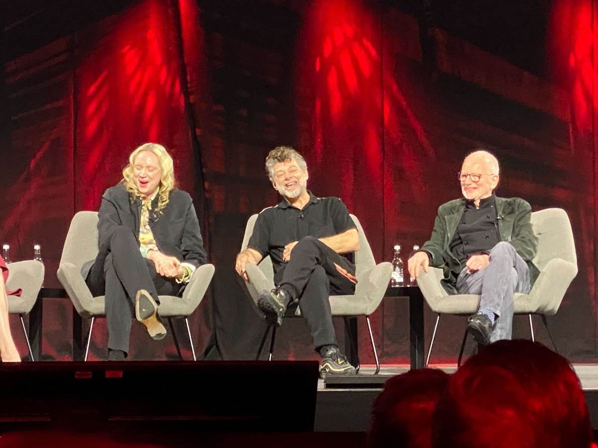 My first panel this more was “Villains of the Sequel Trilogy," but in the above embedded tweet you can see a cool moment that happened during the build-up to that discussion– DJ Elliot brought everyone wielding a lightsaber in the crowd up to the stage, dimmed the lights, and had them all ignite their sabers at the same time– pretty neat, right? Then at 11:00 AM it was time for the panel discussion, which was moderated by friend of Laughing Place Amy Ratcliffe and featured actors Gwendoline Christie (Captain Phasma), Andy Serkis (Snoke), and Ian McDiarmid (Emperor Palpatine / Darth Sidious). This was a very interesting chat between three extremely talented performers who each brought memorable villains to the big screen. Some of my favorite moments included Christie talking about how she pestered her agent to get her into Star Wars Episode VII, Serkis telling a story about how he didn’t recognize Mark Hamill when they first met for a table read, and McDiarmid saying that every time he played Sheev Palpatine it was a surprise to him, because he didn’t have much advance notice leading up to each individual project.