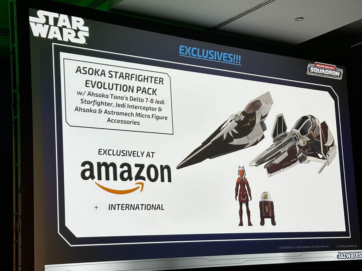 An Amazon-exclusive Ahsoka Tano Starfighter Evolution Pack was announced during the panel, which will be released this fall. It’s unclear if this is technically Series IV or V. This release will please collectors who missed out on the rare Jedi Interceptor from Series I, although this version excludes the ring, which remains exclusive to that release. This release also comes with Ahsoka’s Delta 7-B Jedi Starfighter, famous for being used in just one episode of Clone Wars (plus a few flashbacks). It comes with figures of Ahsoka Tano and her astromech droid.