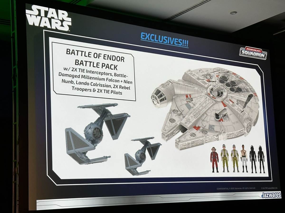 Similarly, a Battle of Endor Battle Pack will hit retailers before 2023 is over, which features a damaged Millennium Falcon with its broken radar dish and figures of Lando Calrissian and Nein Nunb, plus two Rebel Troopers and two TIE Pilots for the included TIE Interceptors.