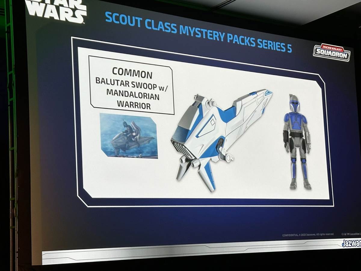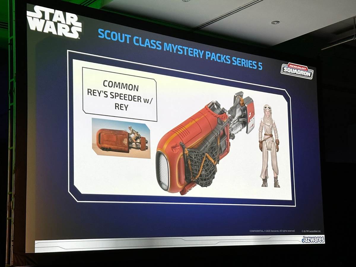 Finishing with the Series V Scout Class, the line includes a chase Nikto Speeder with Boba Fett, rare Durge Speeder with Durge, rare Pirate Speeder with Aurra Sing, AvA Speeder with Imperial Combat Driver, Flitnot Speeder with Geonosian Warrior, Balutar Swoop with Mandalorian Warrior, Tattooine Swoop with Anakin Skywalker, and Rey Speeder with Rey.