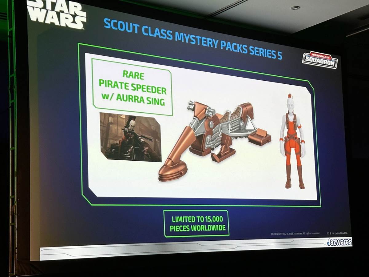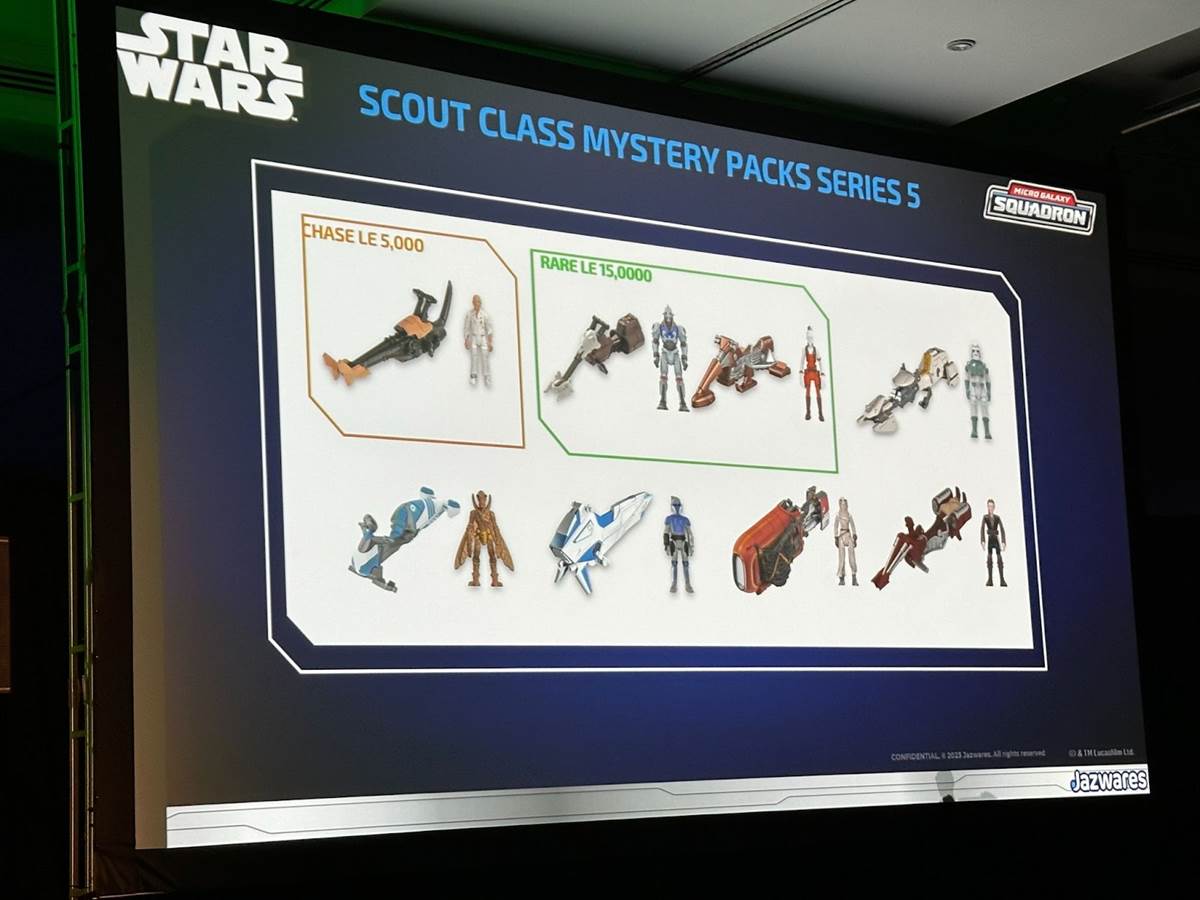It was at Star Wars Celebration Anaheim in 2022 that Jazwares unveiled their new line of micro collectibles, Star Wars Micro Galaxy Squadron. Since then, the team behind the “play & display" collectible line has been hard at work, with Series III rolling out as we speak. For those in attendance at Star Wars Celebration Europe, Jazwares has been rolling out Series IV daily at their booth. But today, during a presentation titled “Star Wars: Galaxy Sized Collecting in A Micro World with Jazwares," the company revealed the full breadth of Series V, minus a few “classified" items that will be announced at a later date. The panel featured Maxwell Lux (Senior Brand Manager), Timothy Bungeroth (Copywriter), and Gihoon Song (Design Manager), moderated by Bret Ingraham (Communications Director). The panel also bequeathed a name to collectors of Star Wars Micro Galaxy Squadron - “Micro Galaxions."