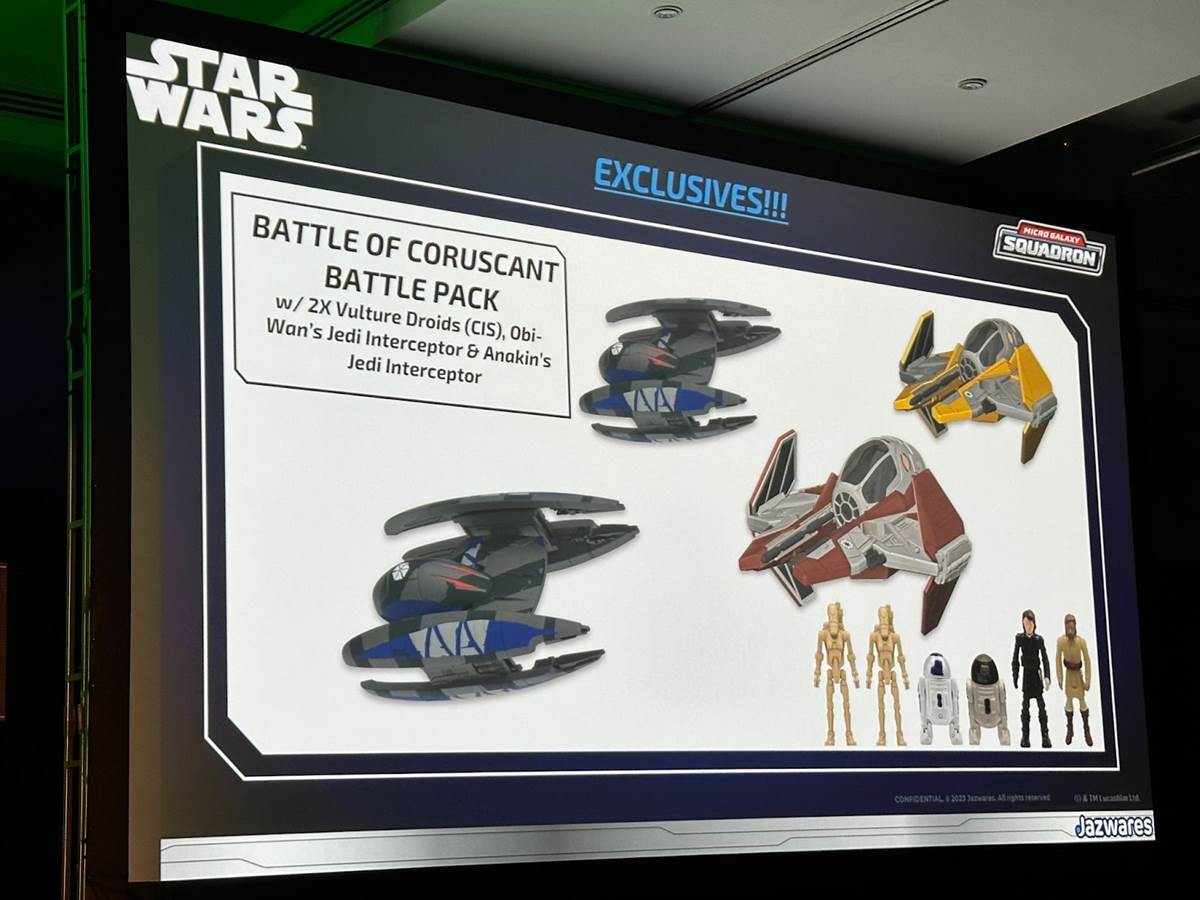 A Battle of Coruscant Battle Pack includes Obi-Wan’s and Anakin’s Jedi Interceptors, plus two Vulture Droids. This will be a retailer exclusive, although which one is still to be determined.