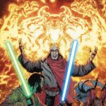 In the secret passageway, Vildar and Tey search for the missing Jedi Master Leebon until Mac begins to suffer from the Force-draining, fear-inducing effects of the Leveler creature. They also spy the Herald of the Path of the Open Hand, Werth Plouth, claiming an artifact called the Rod of Daybreak from the chamber. Then Plouth and his followers bring out Leebon as a sacrifice to the Leveler that accompanies them, which gives us this issue’s tantalizing cliffhanger ending. Like I said at the top of this review, I don’t think there has been an issue of Marvel’s main The High Republic title that has left me disappointed, and this was no exception. Scott and his collaborators, artist David Messina and colorist Frank William, have kept things taught and briskly paced, with illustrations that convey the action in a consistently clear, well-choreographed manner. The overlap with other Phase II stories like The Battle of Jedha audio drama remains welcome, and I feel that I’ve come to know and care about these various characters over the past eight issues. Knowing The High Republic, that likely means tragedy for the two remaining installments, but we’ll have to wait until next month to find out for sure.