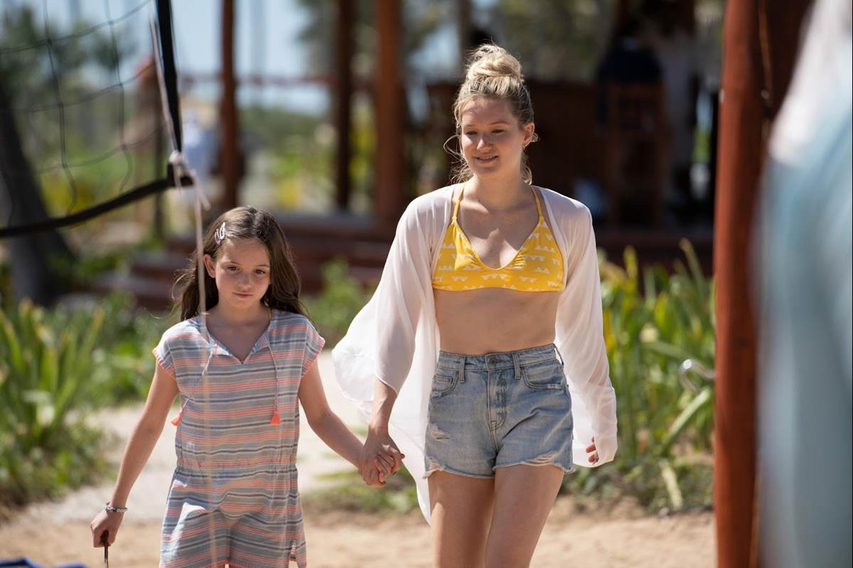 Back on the island, the plane is just landing, and the new guests of Indigo Bay Resort are starting their journey to the beach. The Thomas family, with Alison, her younger sister Claire and parents Bill and Mia, (Kenlee Townshend, Michael Park, Betsy Brandt) get to know their fellow vacationers, and then board the resort bus. In the future, Mia and Bill Thomas are older and having dinner when they explain to a fellow diner that yes, they do have a daughter. (Not two, just one.)