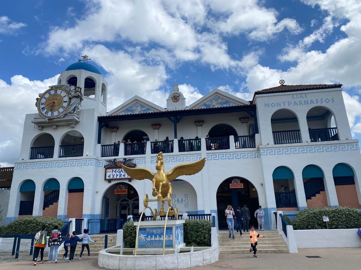My immediate thought with Pegase Express was that it was essentially a Greek Firechaser Express, a coaster at Dollywood. The ride begins with a launch out of the station, into a lift hill followed by a lengthy hillside and water adjacent section. You then enter a show scene featuring Medusa, which leads into a backwards launch and the last section of the ride. While Firechaser Express does have a different layout, the sequence of elements is the same, and it is from the same manufacturer, Gerstlauer. I enjoyed Pegase Express just as much as its US counterpart. A fun family coaster that thrill seekers can also get immense enjoyment out of.