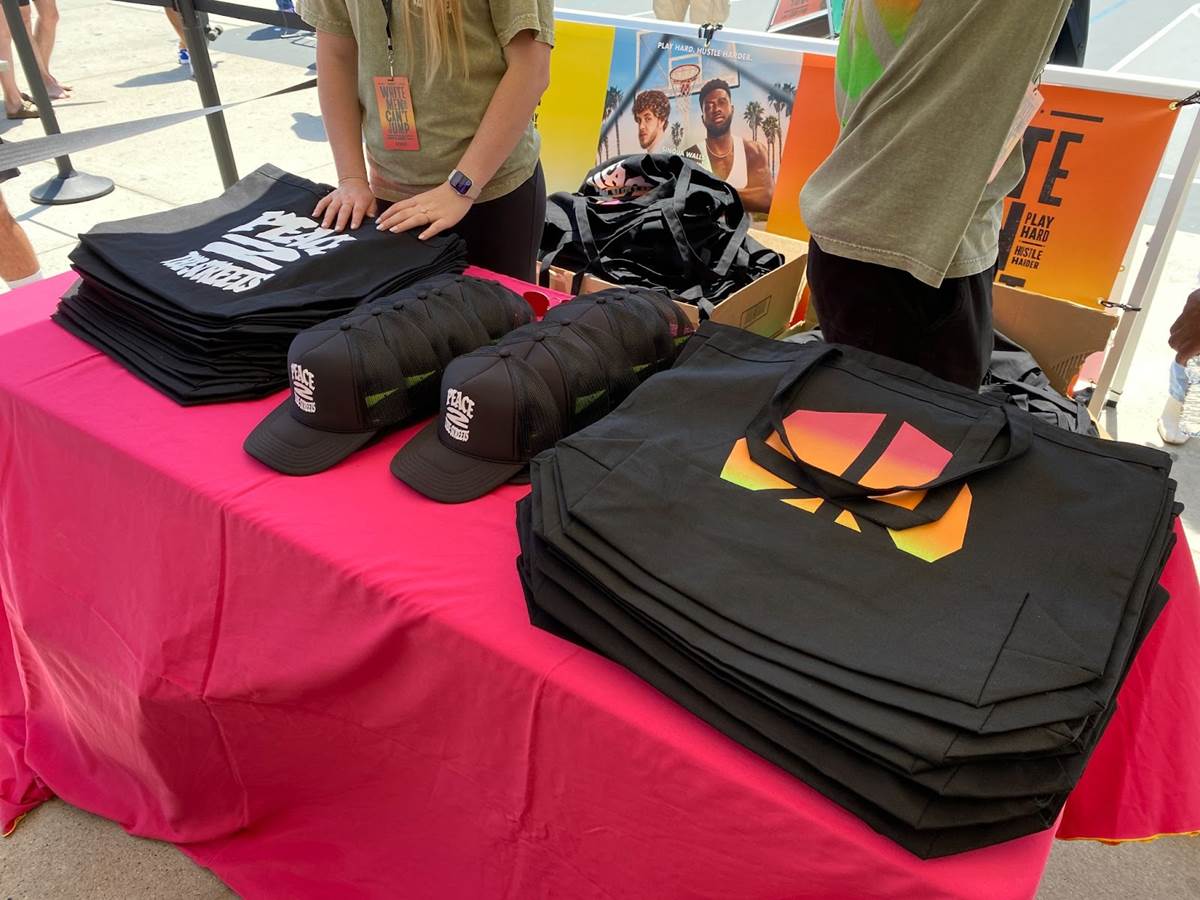 For this White Men Can’t Jump promotional event, Hulu partnered with the non-profit organization Hoopbus, which was available onsite for guests and fans to play some ball, right next to the famous Venice Beach Courts just steps from the Pacific Ocean. Then the first 100 participants to show up for the event at 12:00 noon were treated to complementary merchandise inspired by the new film, and given the choice between a White Men Can’t Jump hat, tote bag, or t-shirt.