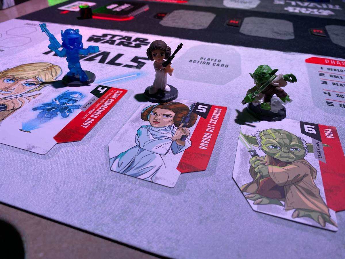 The atmosphere at Scum & Villainy was energetic as inviting Star Wars fans and influencers gathered around central tables and in corner booths reminiscent of where Han Solo shot poor Greedo (first) in A New Hope. Funko Games representatives were on hand to guide attendees through the basics of the game, and guests were given scorecards to keep track of their progress through the evening– the participant with the most amount of points by the end of the night receiving a gift bag full of Funko goodies and some attractive Loungefly Star Wars bag and apparel. But the real highlight here was Star Wars Rivals, which generated a lot of buzz among those experiencing the game for the first time.