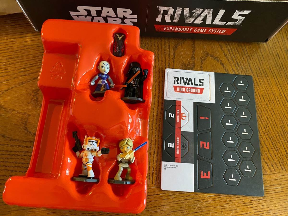 The other thing that’s really fun about the game is the amount of strategizing that goes into each move. Determining on which location card to place each character is the first challenge, and then once the die is rolled there’s a whole additional scramble to get figures into a position where they’d be the most useful– avoiding the possibility that they may go to waste entirely. Plus characters may build up negative “influence points" on their cards, perhaps eventually necessitating a visit to the Bacta tank to recover for a round, temporarily eliminating them from play. There’s also the “High Ground" factor, which alternates each round and can influence the battle either way. The designs of the characters are cute– not in a recognizably Funko-style way (these figures have pupils, unlike Funko Pop! Vinyls), but in a way that’s undeniably divergent from the hyper-realistic likenesses of other Star Wars action figures. That’s another aspect of this game for which your mileage may vary, but those who enjoy collecting adorable miniature versions of their favorite characters might get a kick out of Star Wars Rivals for just that very reason. Otherwise I would say it’s a good, entertaining game for beginner-level players within the age range recommended by the company. It doesn’t take terribly long to learn and it can become fast-moving and even pretty exciting the better you get at it. I could see Star Wars Rivals becoming popular at conventions or other fan events, especially once more character possibilities are inevitably added into the mix, considering the collectible (and thus tradeable) nature of this type of thing. And for those who simply want a quite pleasantly diverting, not overly time-consuming way to set familiar Star Wars characters against each other, this might be right up your alley.
