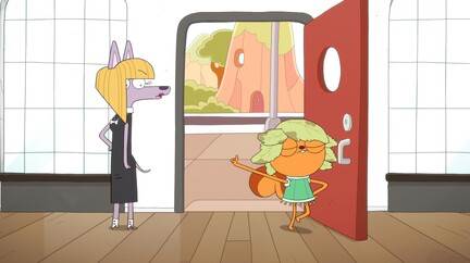 Under the guise of the personal collection, in exchange for ten rare ferns for the Ghost Wolf to look after as payment, Kiff heads back to town to find Ghost Wolf some gallery space while Barry helps Ghost Wolf get his 10 paintings finished. Too bad Ghost Wolf has painter’s block. So, Barry asks why Ghost Wolf painted him and his friends while they were lost, what about that was so inspiring? Well, Ghost Wolf likes to observe the natural behaviors of the population, so Barry suggests they do just that. Flying together through Table Town thanks to a bit of Ghost Wolf’s magic, we are treated to a musical montage of Barry and Ghost Wolf seeing all the familiar residents we have come to know and love, but as they are both invisible while they are doing this, they are catching them at their most vulnerable moments. We see Kiff’s Dad dancing privately in the basement, Secretary Prince eating a meal….and then the plates he served it on, and we also see Roy Fox applying fake bushy eyebrows.