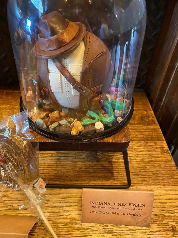 Jock Lindsey’s Hangar Bar’s new menu will include Giant Bacon for All Mankind (chocolate covered bacon with Trusty Revolver for two), the Charter Flight (including Reggie’s Revenge, Cool-Headed Monkey, and Mayor’s Reserve), Marche Stuffed Dates and Figs (Marcona almond and goat cheese stuffed dates wrapped with prosciutto, cognac figs and Cipollini nion), Chicken On the Egg (fried chicken, deviled eggs and hot honey sauce), and Tacos Al Pastor (chipotle pork belly, pineapple pico de gallo, red cabbage, grilled corn tortilla). There will also be an Indiana Jones Petite Cake coming to Amorette’s Patisserie and a Marion’s Medallion (solid dark chocolate pop with crisp raspberries in milk chocolate crisp pearls) coming to The Ganachery in Disney Springs, as well. All this will become available on June 30th in conjunction with the new movie’s release.