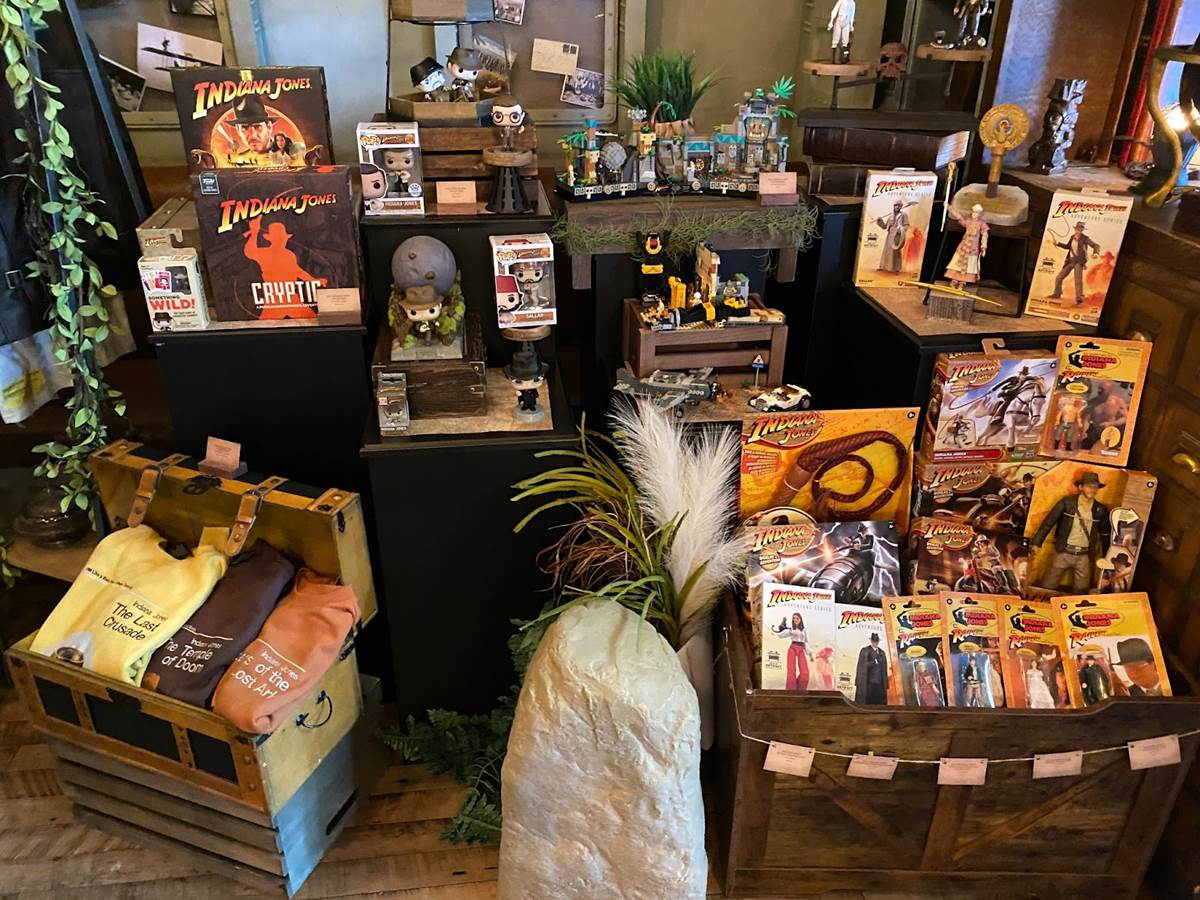 Of course, besides the new Jock Lindsey’s menu, this event was also intended to get the word out there about all the adventurous merchandise available through a variety of Lucasfilm licensees, tied into the entire Indiana Jones franchise. Inside the Hangar Bar there was a big display of items from shopDisney, Hasbro, Geeki Tikis, RockLove, Gentle Giant, Hallmark, Regal Robot, RSVLTS, SalesOne, Loungefly, Reyn Spooner, Dorfman Milano, Heroes & Villains, Funko and Funko Games, and LEGO.