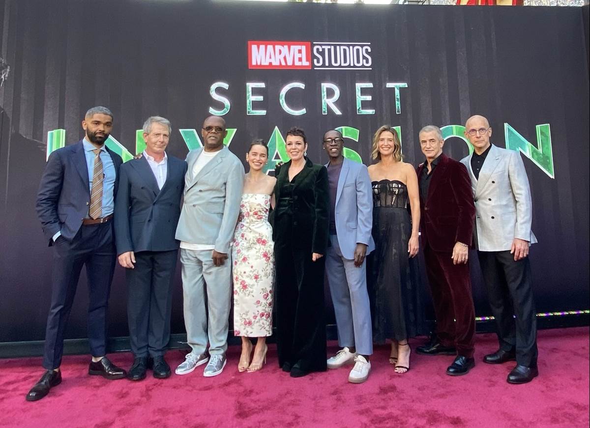 - Secret Invasion stars Samuel L. Jackson, Ben Mendelsohn, Cobie Smulders, Martin Freeman, Kingsley Ben-Adir, Charlayne Woodard, Killian Scott, Samuel Adewunmi, Dermot Mulroney, Christopher McDonald, Katie Finneran, with Emilia Clarke and Olivia Colman and Don Cheadle.