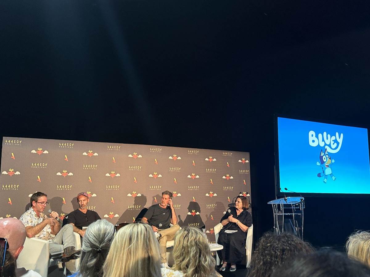 Bluey may seem like an overnight sensation, but it’s actually the result of decades of hard work. That’s one of the big takeaways from an Annecy Festival panel from BBC Studios Kids & Family that shone a spotlight on everyone’s favorite blue heeler puppy, Bluey. Moderated by Henrietta Hurford-Jones (Creative Director of Indies for BBC Studios Kids & Family), the panel included series creator and writer Joe Brumm, series director Richard Jeffery, and animation director Mark Paterson.