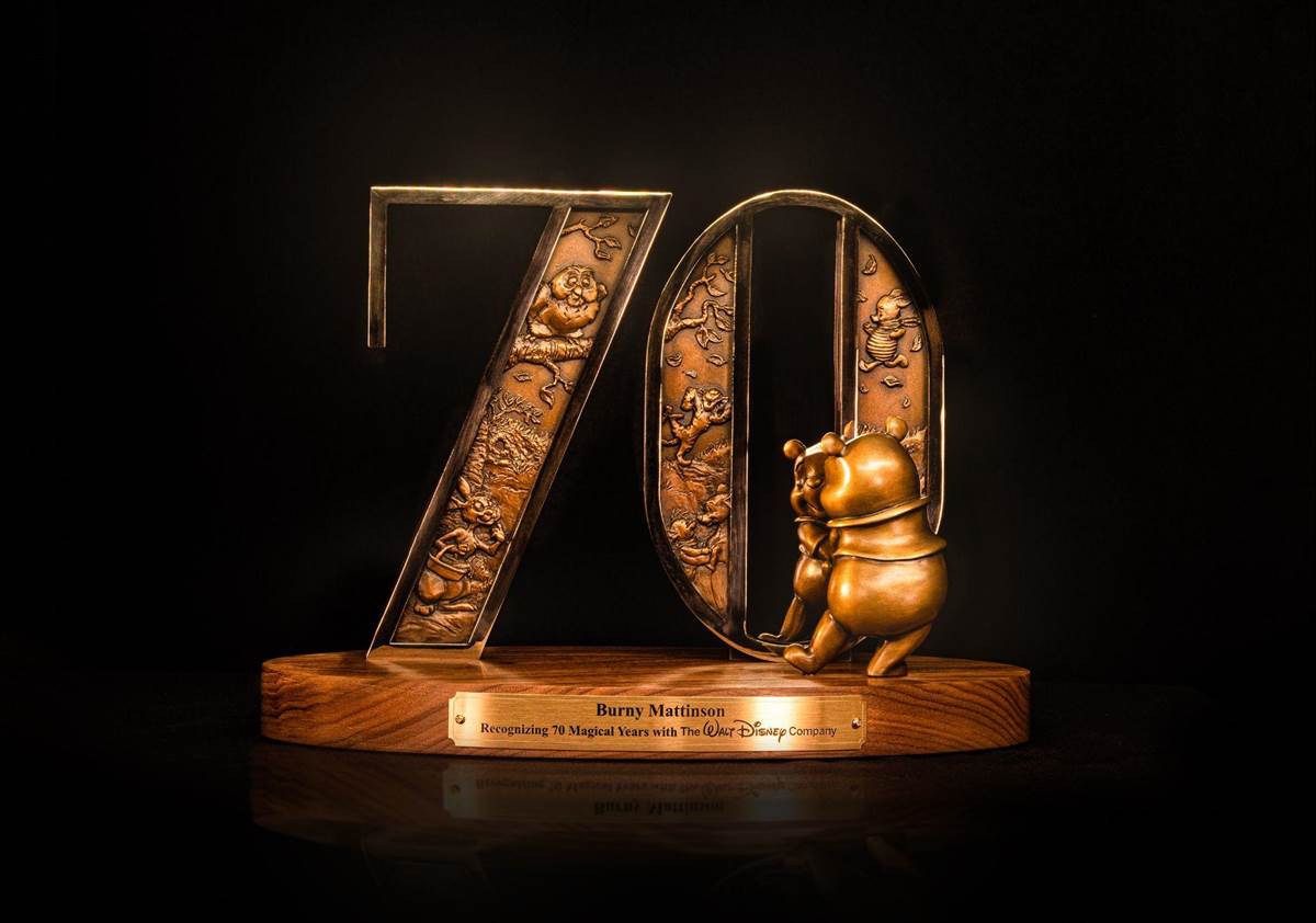 Burny had a role in designing his Service Award for what would have been his 70th anniversary with The Walt Disney Company. Fittingly, it features Winnie-the-Pooh looking through the mirror as an animator might, with his friends from the 100 Acre Wood adorning the digits. While this statue is an honor to the longest service Disney employee in history, his true monument will be in the hearts of those at Disney Animation. Disney Animation’s Jennifer Lee said you can still hear his name in the hallways of Disney Animation as the artists recall advice and lessons they have learned from him, whether it be about animation or life itself. For Burny, the studios was his family and his family will remember him forever. As Burny once said, “Disney has always been a family place. I think that’s what’s so rich about it. It’s family. And, you know, that was the big thing Walt felt, way back. He was family."