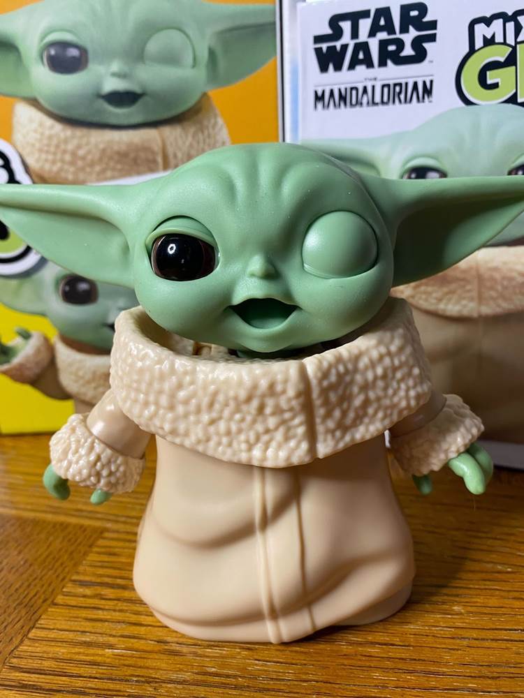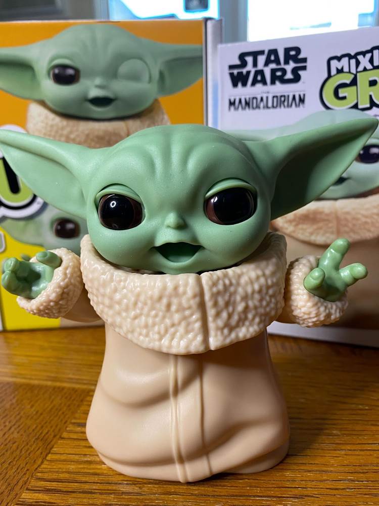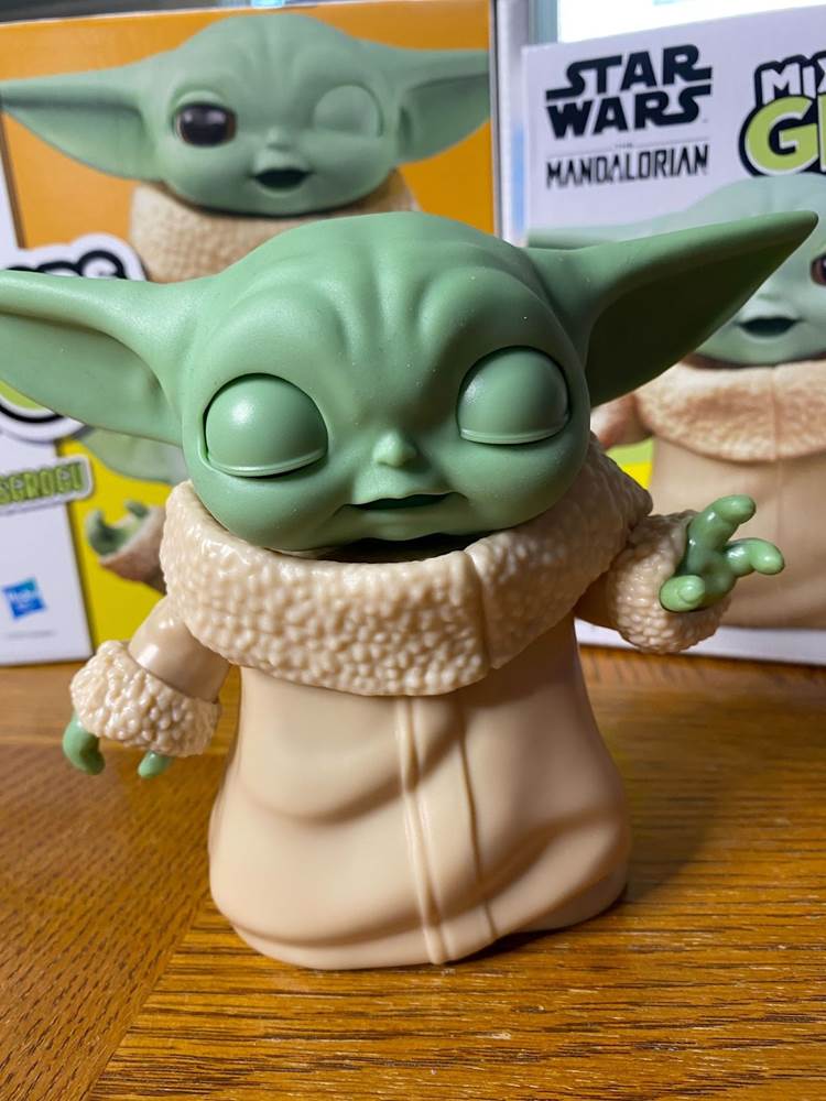 Yesterday I received in the mail Hasbro’s adorable new Mixin’ Moods Grogu toy, which the company advertises as being capable of making 20+ poseable expressions. And this morning I had the opportunity to sit down with Mixin’ Moods Grogu (inspired by the smash-hit live-action Disney+ Star Wars series The Mandalorian) and actually try many of those expressions out.