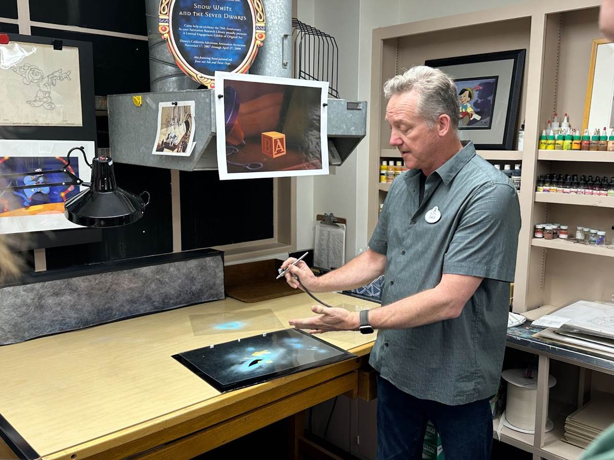 Next, we entered the original Ink & Paint building, most of which is now home to Searchlight Pictures. Inside, the team walked us through the traditional process of inking and painting a cel. Using Tinker Bell as an example. We observed each step of the traditional ink and paint process.