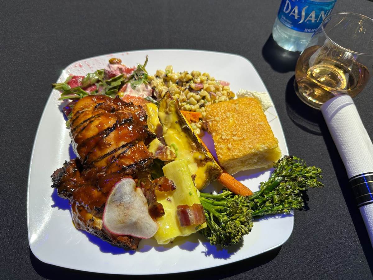 Greeted by wines and cocktails, an open bar was set up along with a buffet-style dinner. I chose barbeque chicken, beet salad, succotash, broccolini, cheesy potatoes, and cornbread with apple butter.