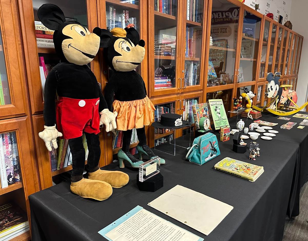 We next went to the Frank G. Wells building, home to The Walt Disney Archives. Our Adventure Host, Becky Cline, was waiting for us with an assortment of artifacts laid out on a table, in addition to one’s on display in glass cases. Among them was the 4-page document that officially formed what is now The Walt Disney Company on October 16th, 1923, signed by Walt Disney. The storyboard script for Steamboat Willie, the first Disneyland ticket printed, and some of the earliest Mickey Mouse merchandise were also displayed.