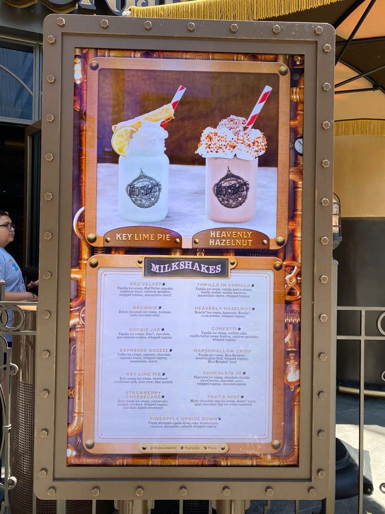 In celebration of Universal CityWalk’s 30th anniversary (it first opened in May of 1993), Toothsome Chocolate Emporium & Savory Feast Kitchen is offering 13 different “grab-n-go" milkshake varieties in cool keepsake plastic jars with the memorably steampunk-themed restaurant’s stylish logo emblazoned on them. Universal says “these unique, hand-crafted, over-the-top milkshakes are individual works of art, each featuring elaborate garnishes from whole cupcakes, brownies and cookies, to ice cream sandwiches and pie slices." Guests can choose to either enjoy the milkshakes at Toothsome’s indoor or outdoor seating, or simply take the delicious desserts to go as they stroll through the rest of CityWalk.