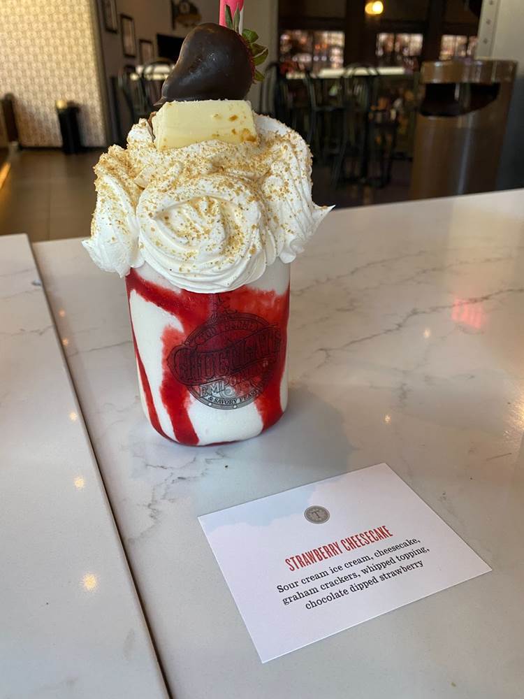 - Strawberry Cheesecake: “Sour cream ice cream, cheesecake, graham crackers, whipped topping, chocolate dipped strawberry"