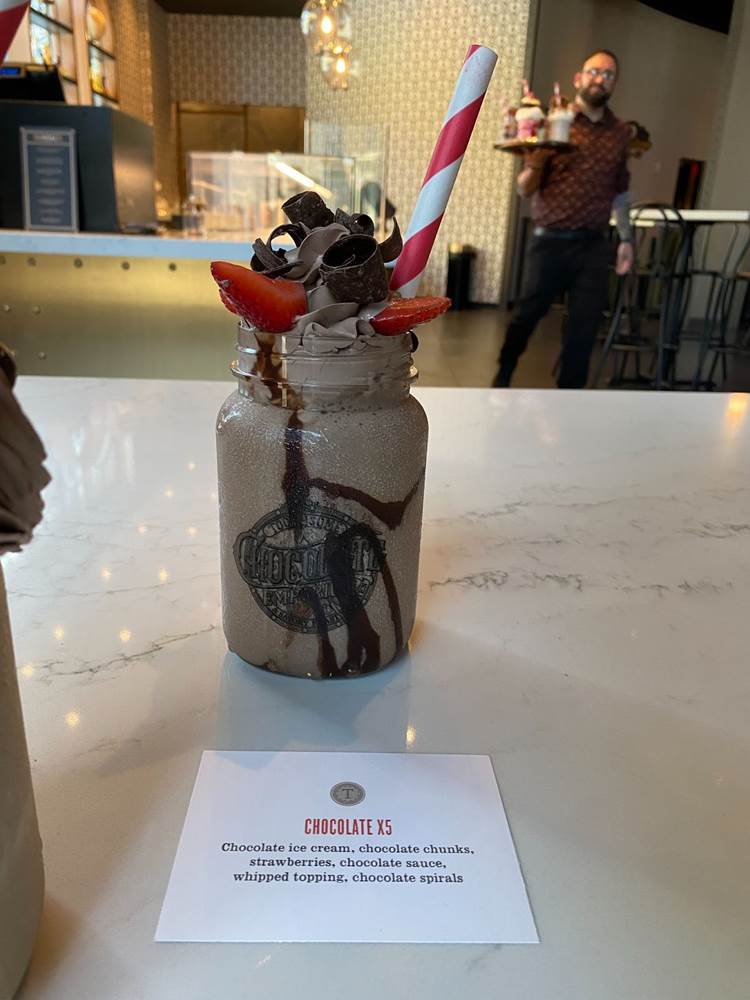 - Chocolate x5: “Chocolate ice cream, chocolate chunks, strawberries, chocolate sauce, whipped topping, chocolate spirals"