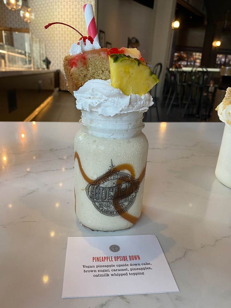 - Pineapple Upside Down: “Vegan pineapple upside down cake, brown sugar, caramel, pineapples, oatmilk whipped topping"