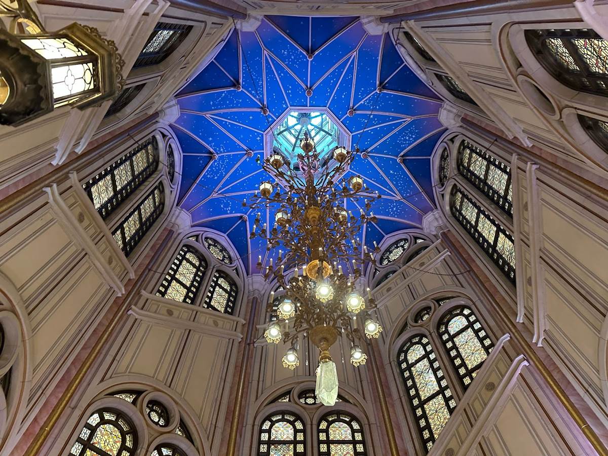 Leia was involved with the creation of the Gardens of Imagination and Fantasyland, so that’s where our tour led us. She pointed out lots of details in the castle and told us the story of the attraction Voyage to the Crystal Grotto, which connects to the story of the castle. As the legend goes, a young boy once saw a golden dragonfly, following it through a winding river that led to an enchanted crystal cavern. In order to protect this magic, the people built a castle over the grotto, which houses all of the royal stories. When you walk through the level, you’ll notice one of the magical crystals is at the center of a giant chandelier, with the ceiling reflecting constellations that tie into each princess’ story.