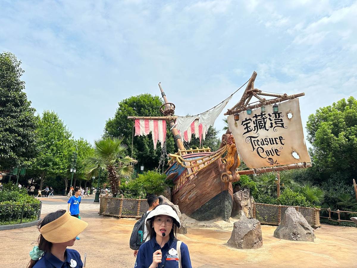 Ice led the tour into Treasure Cove, the only pirate-themed land at any Disney Park. As the story goes, the island was a popular pit stop for pirates, leading to multiple battles over buried treasure; thus the land has many damaged areas. Its residents are still under constant threat of pirates.