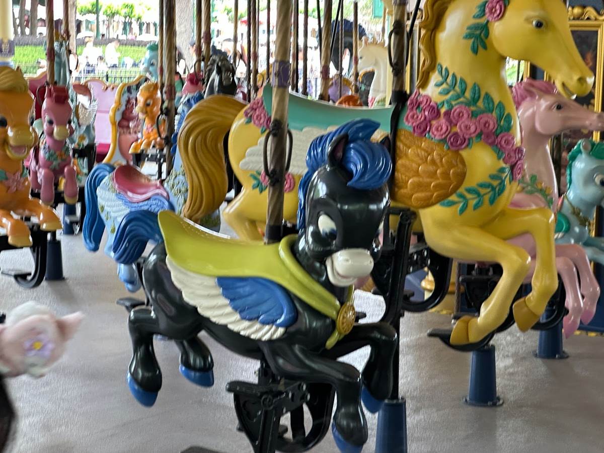 We made it through lunch quickly, so we went to the Gardens of Imagination to experience the two rides that are in every Disneyland-style park around the world. The Fantasia Carousel is a fun Disney twist on the ride that inspired Walt Disney to create his own theme park. Each horse is a character from the “Pastoral Symphony" sequence of Fantasia. The benches feature the hippos, alligators, and ostriches from “Dance of the Hours."