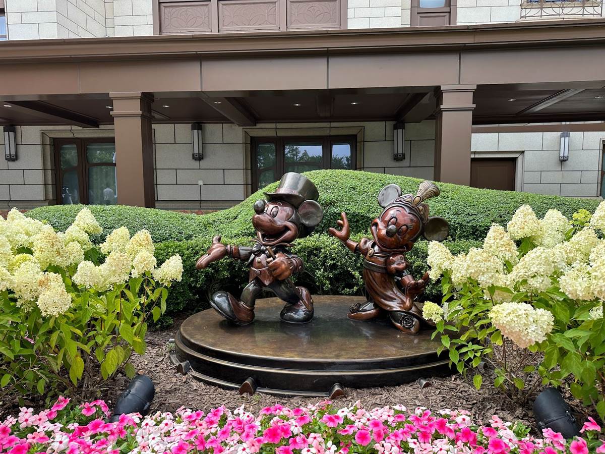 The hotel is done in an art nouveau style, with Mickey Mouse and his pals prominently featured in the decor of both the lobby and guest rooms, often with musical instruments in hand. We upgraded to a Magic Kingdom Suite, which had a full and half bathroom and a sitting area in addition to a king-size bed.