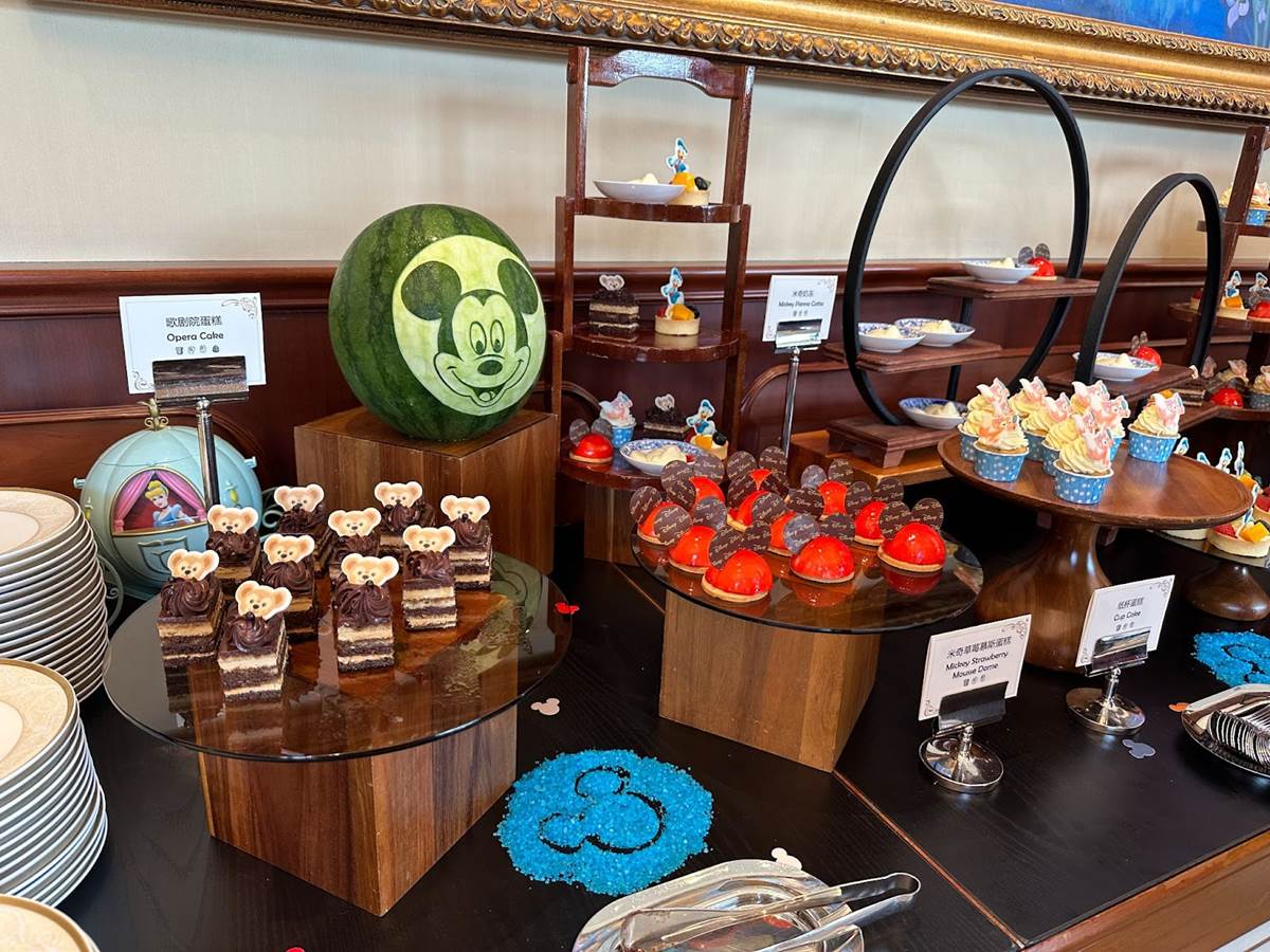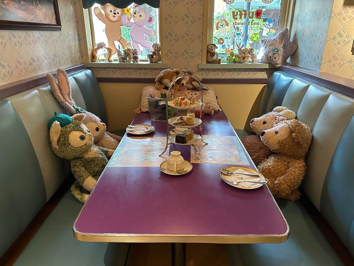 A group dinner was held downtown at Din Tai Fung Restaurant, which featured an acrobat show. We chose to stay in the park and enjoy dinner on our own, but our fellow adventurers raved about both the meal and show. As a fan of all things Duffy and Friends, we enjoyed the Mickey & Pals Market Café Duffy and Friends Summer Afternoon Tea. It included a hot tea, a character-themed milkshake, and an assortment of sandwiches, tarts, and cakes.