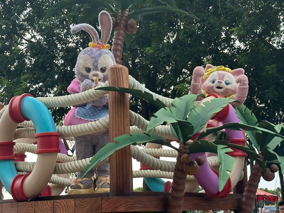We caught the parade, Mickey’s Storybook Express, which included a Duffy and Friends pre-parade with a water feature. Each of the adorable plush characters was equipped with a water launcher. You haven’t lived until you’ve been soaked by Stella Lou and Lina Bell.