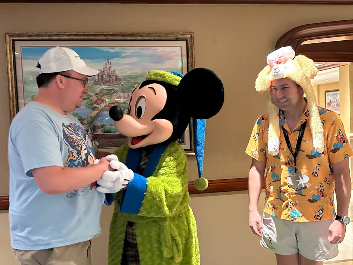 Back at the hotel, a reception was set up in the Magic Kingdom Club, with lots of snacks and desserts available. It was a perfect place to watch ILLUMINATE! A Nighttime Celebration, the nighttime fireworks spectacular. And the day ended with Mickey Mouse making a sleepy appearance in his pajamas.