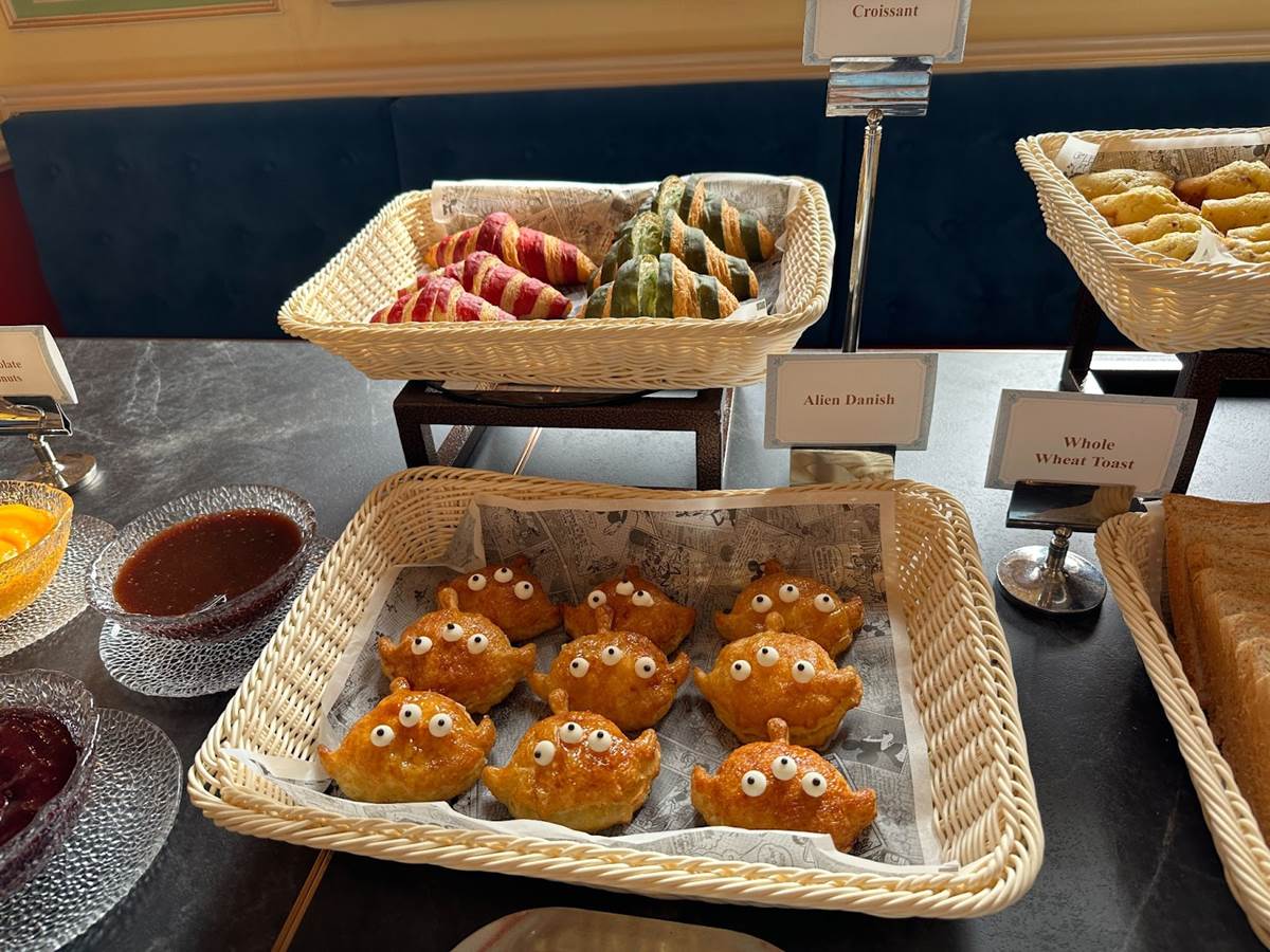 The buffet featured lots of Disney-themed dishes. My personal favorite was a pastry that looked like the Little Green Men from Toy Story, which was cream filled.