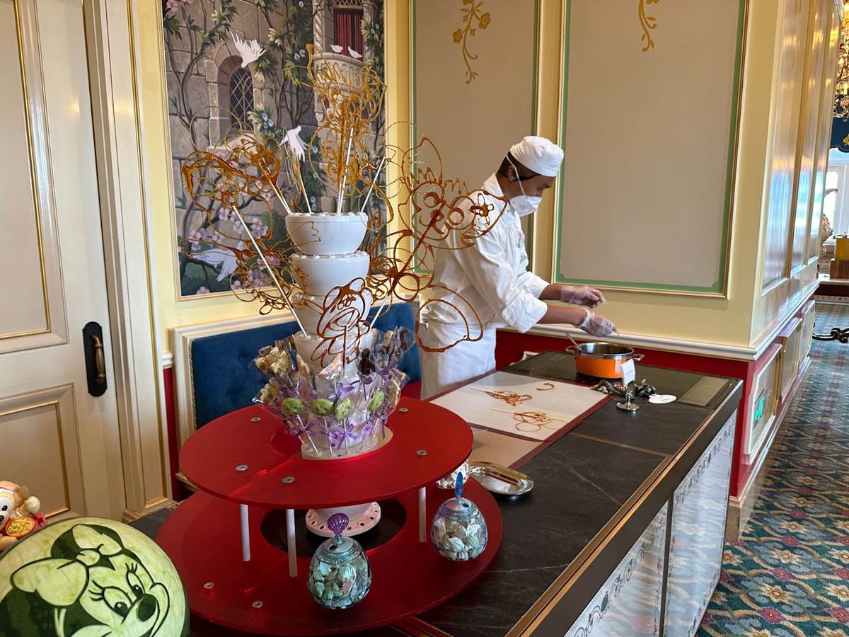 A candy maker was also making intricate lollipops in the shape of characters that Guests could take.
