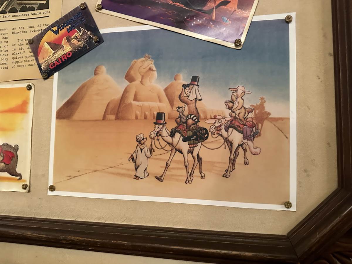 In Tokyo Disneyland, the lobby of the Country Bear Theater features photos from the band’s world tour. Among their memorable tour stops is the Sphinx and Great Pyramids.