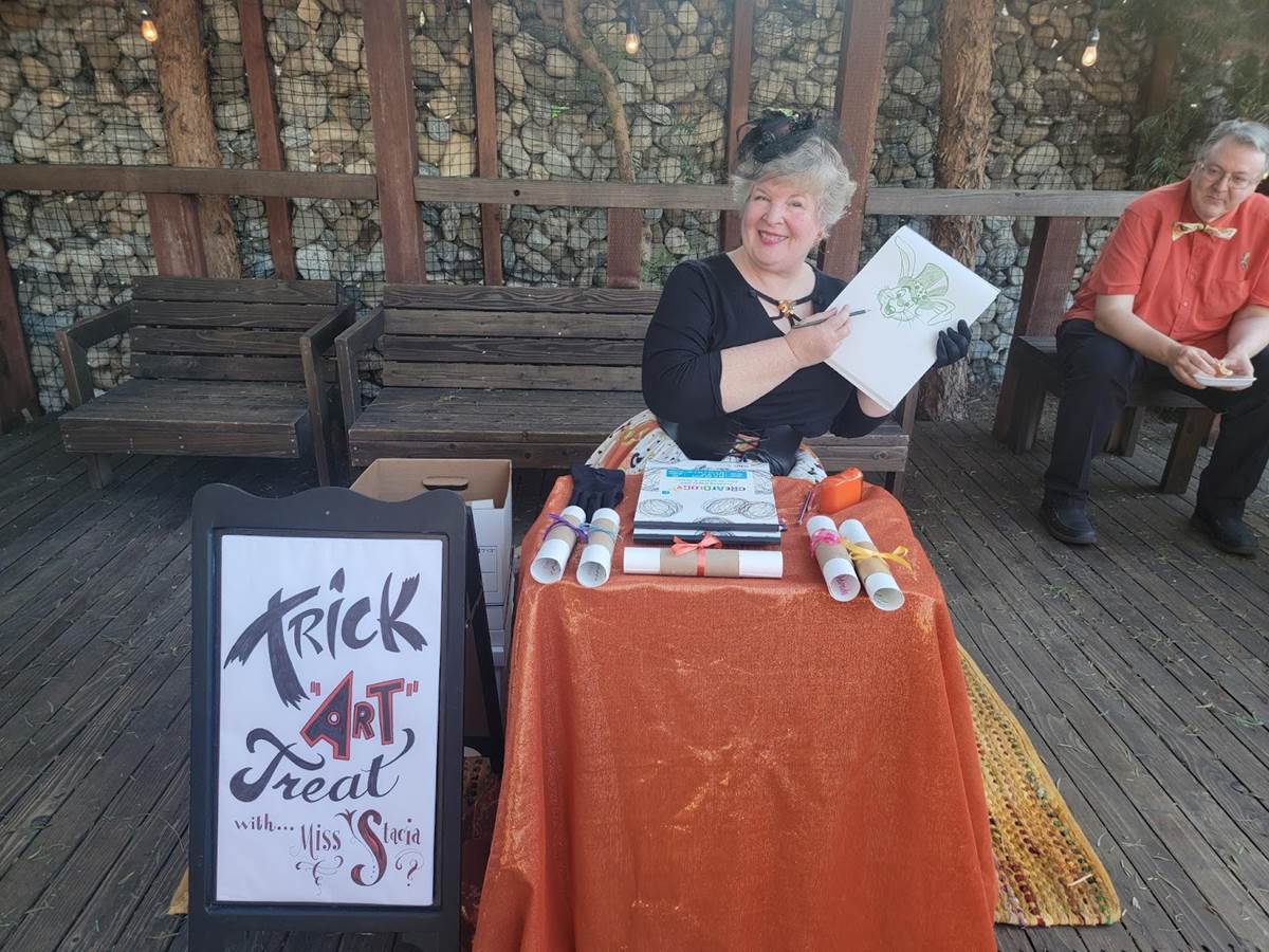 We are all familiar with the fun of Trick or Treat at Halloween but during the recent event kick-off, talented artist Stacia Martin put her unique spin on the tradition with Trick "Art" Treat showcasing the beauty that can be created simply with pencil and paper and providing us with very special take-away reminder that the Anaheim Halloween fun happens October 28. Stacia is among the many volunteers who bring their talents together to create a very special community event.