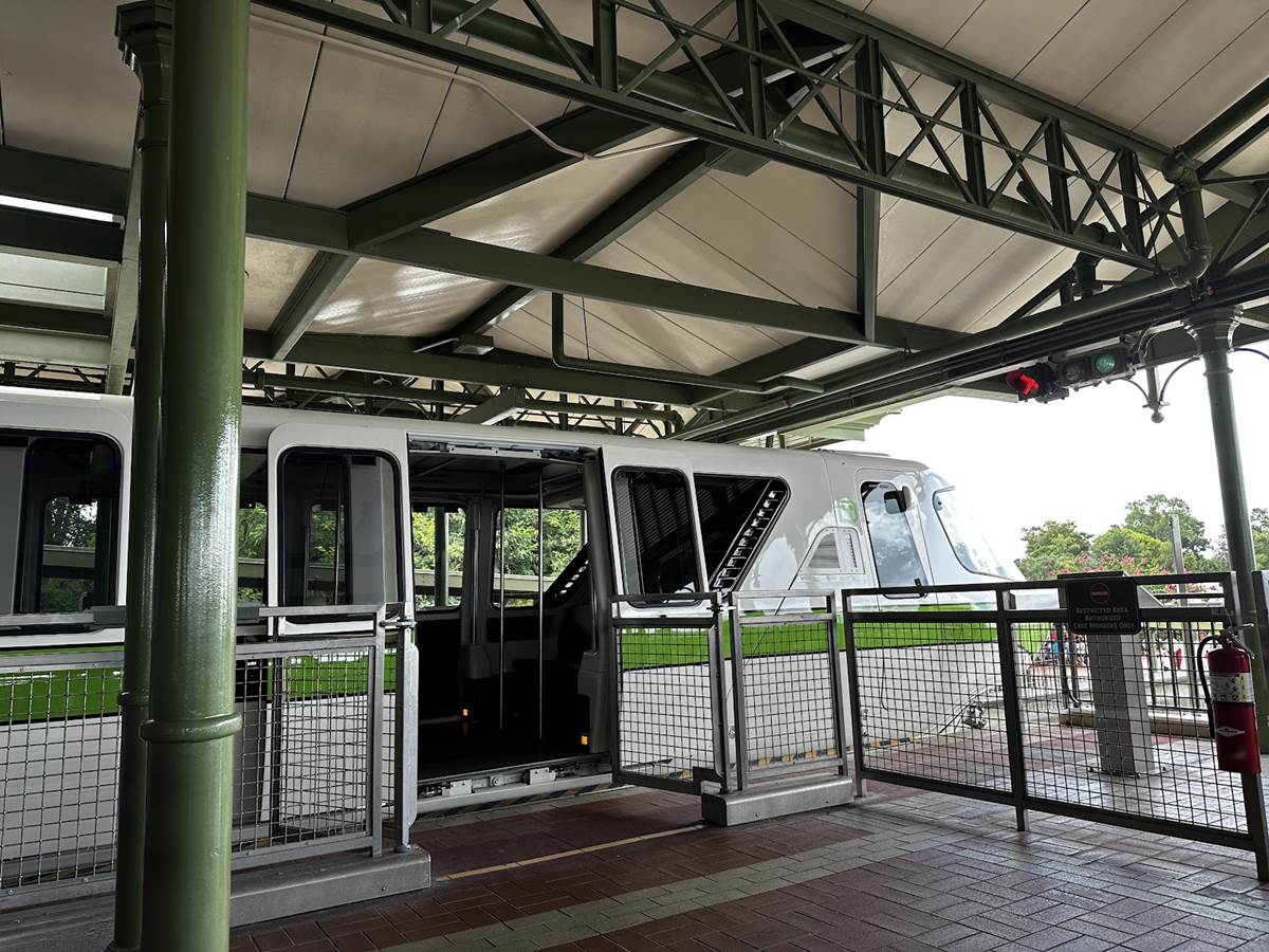 To get back to the park, we boarded Monorail Green and got to travel backward over switches to get on the express line, backing into Magic Kingdom Station.