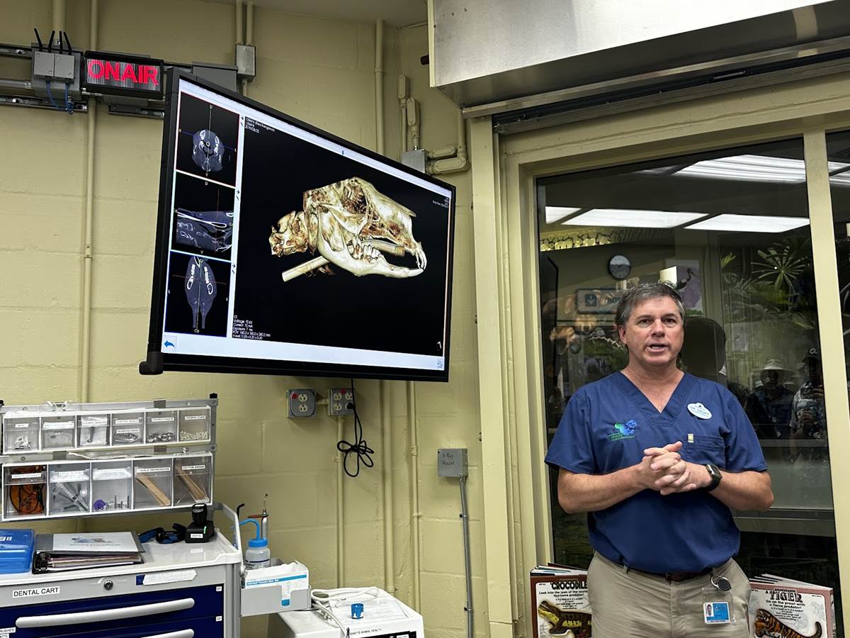 We were reunited with Dr. Geoff in the Animal Hospital, where Guests can see animals getting their checkups. He recounted one of his favorite moments in that space, the birth of a white gibbon named Harper, who had to be delivered by c-section. He shared that Guests hoping to see an animal check-up can visit Guest Relations in the morning to ask for the day’s schedule, although that sometimes changes. And during a Q&A portion, Dr. Geoff shared that they’re currently partnering to create a respirator for manatees that will match their unique held breath pattern.