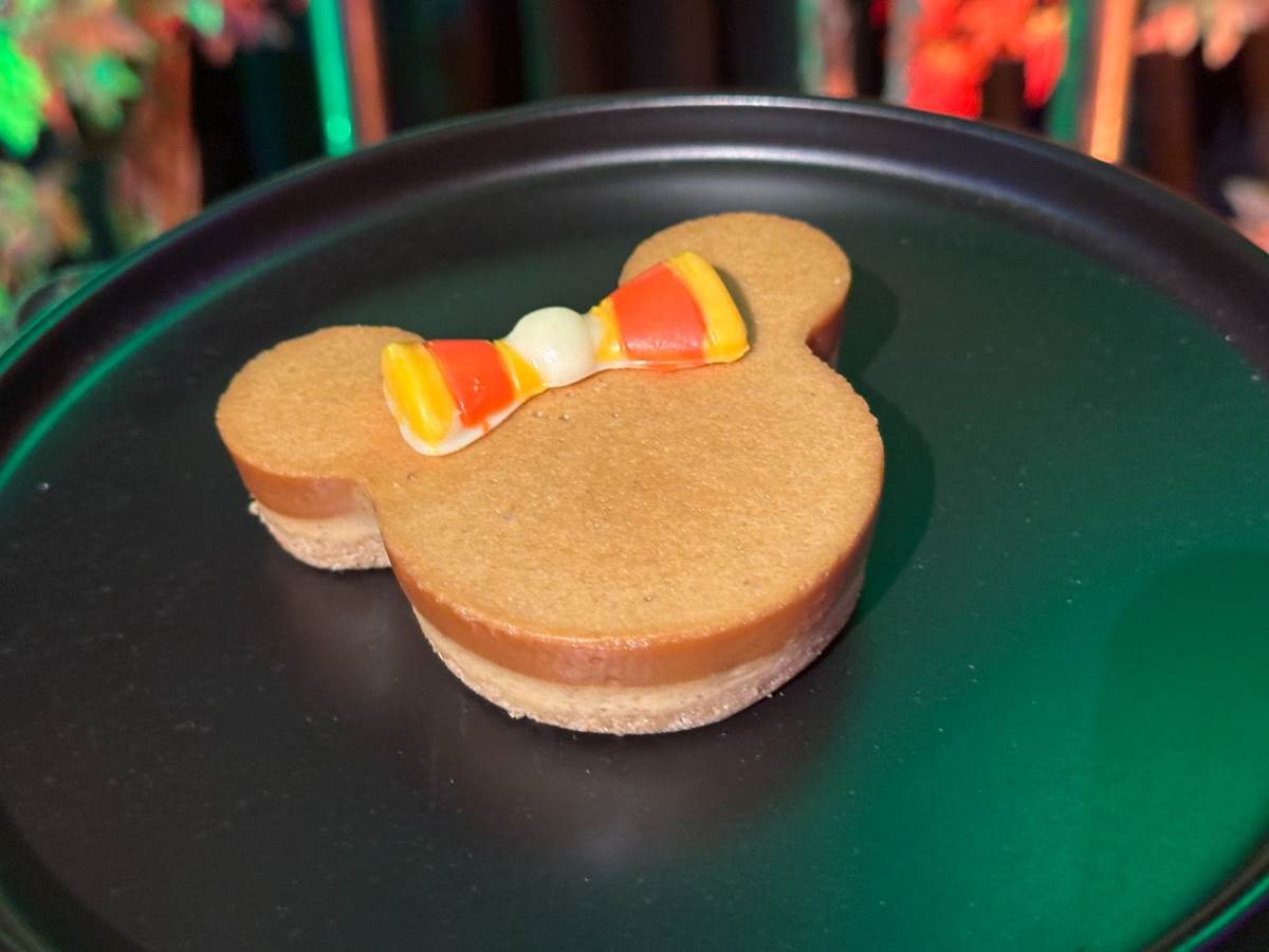 You’ll find a treat decidedly less spooky at the Main Street Bakery, a Minnie-shaped Pumpkin Cheesecake. It’s topped with a pumpkin coffee mousse and decorated with a white chocolate bow decorated to look like candy corn.
