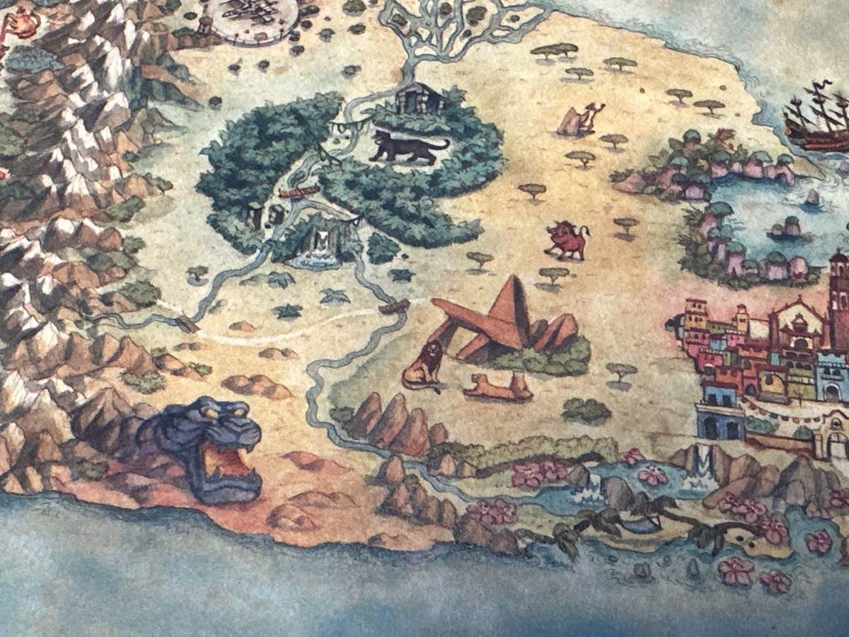 Nudging forward, we arrive at areas inspired by The Jungle Book and The Lion King. Both areas seem pretty sizable. While they could be anything, my suspicion is that these are perhaps more youth activities spaces.