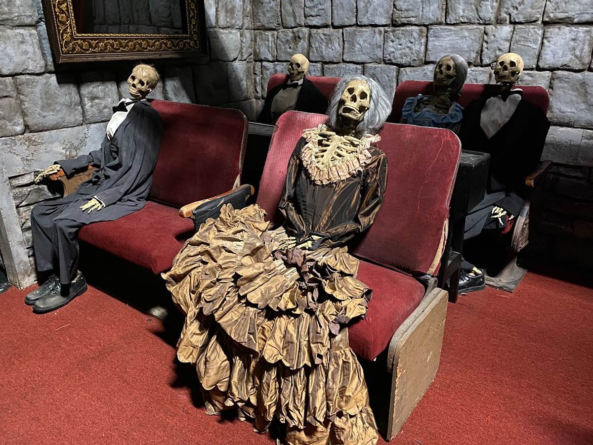 Murdy and his team asked the question “if all these monsters are underground, what do they do for fun?" So, they created what he called a “cabaret of death," which welcomes guests with a giant devilish facade. It’s in the cloak room for this theater that guests will encounter the Invisible Man.