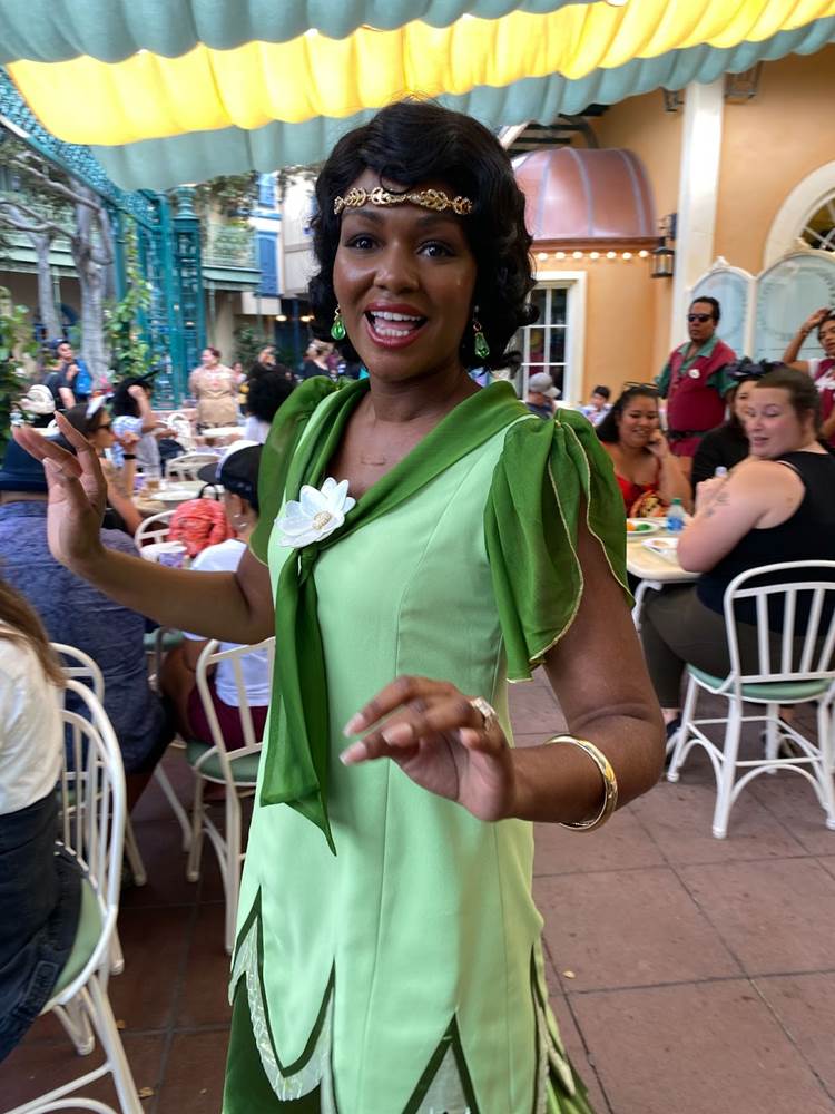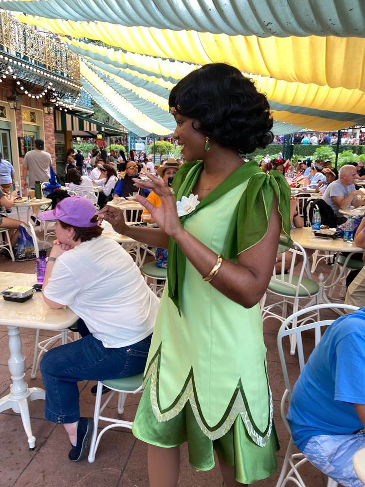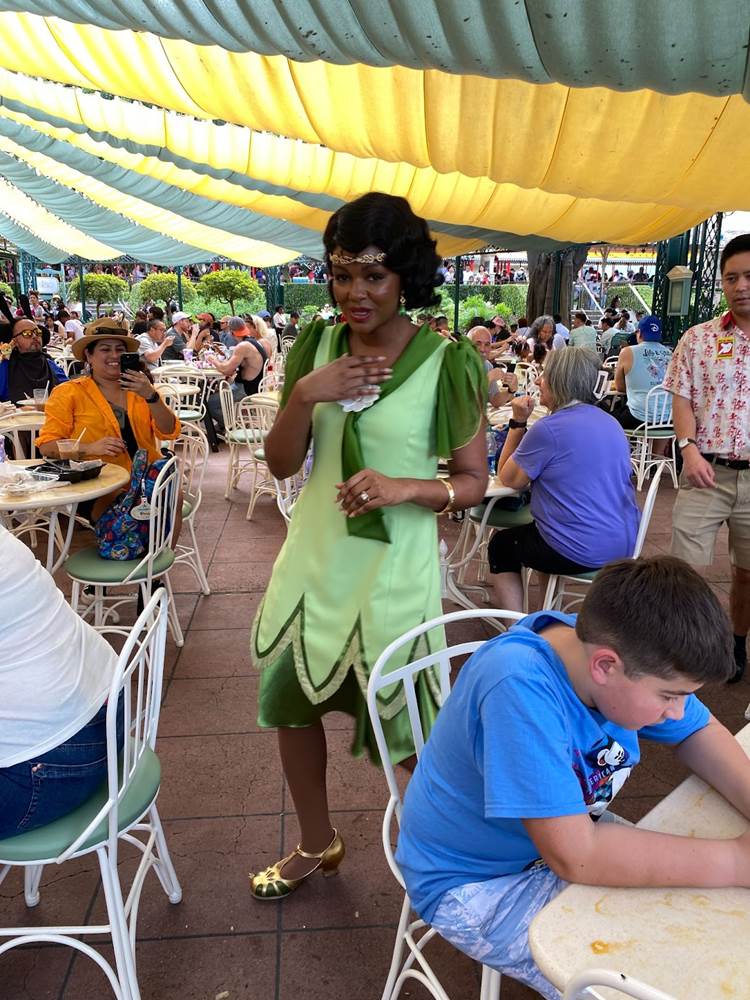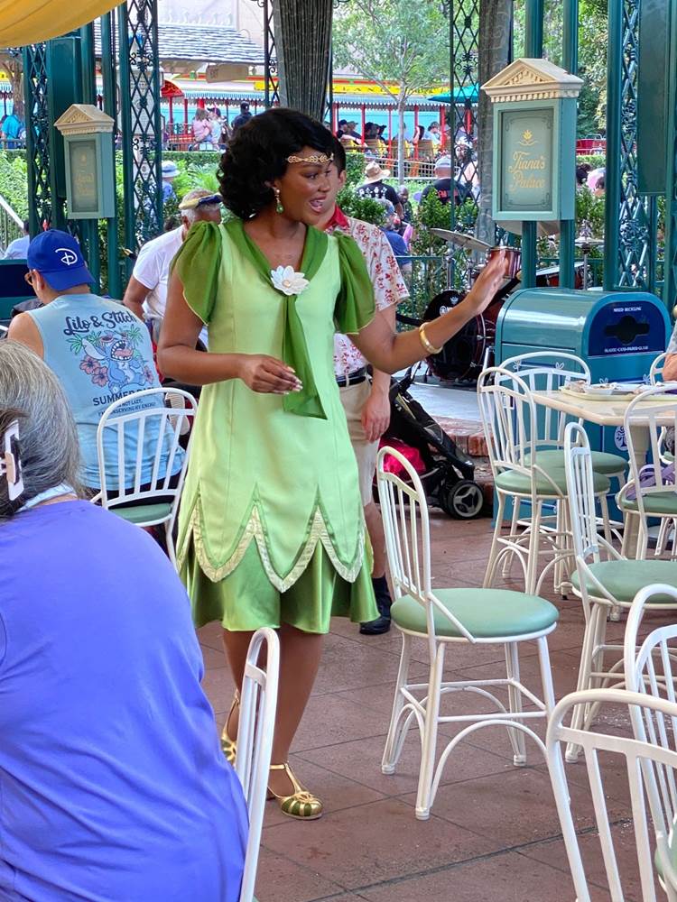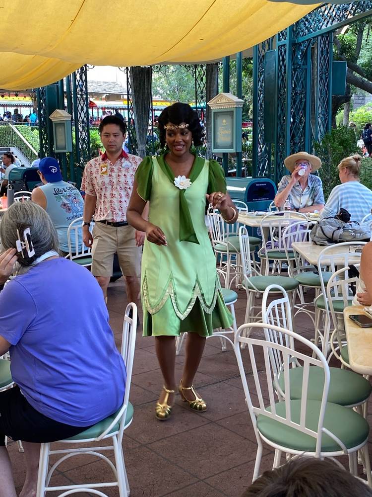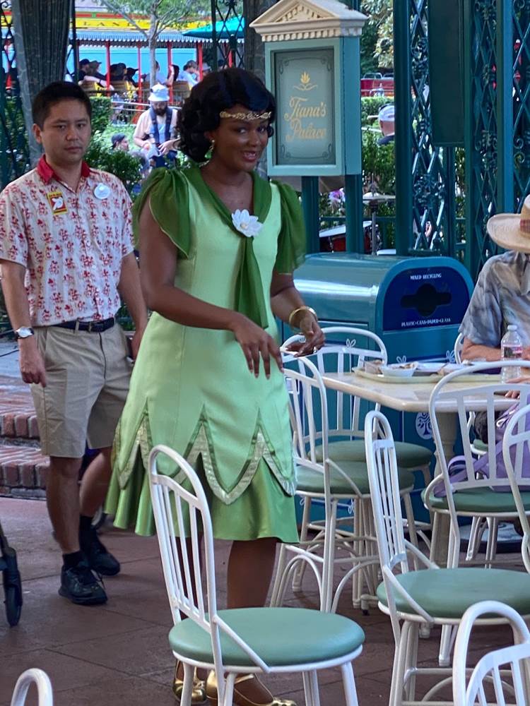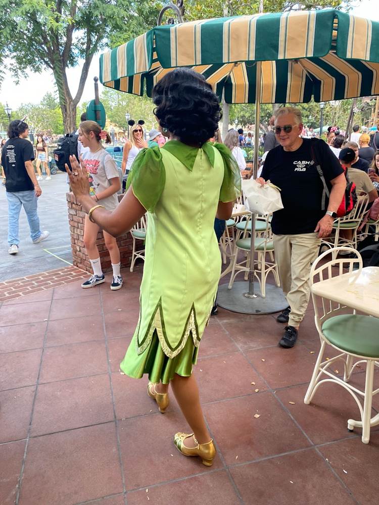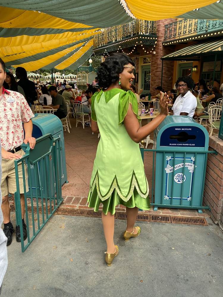 During that brief stop, I also spotted Tiana herself wandering through the outdoor dining area greeting guests in her new outfit that was revealed last week.